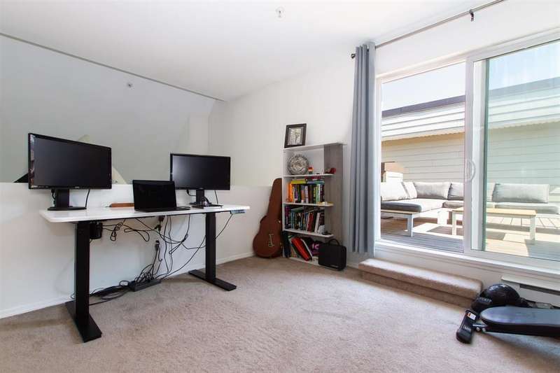 WONDERFUL 3 Bedroom top floor unit in Starboard building in Marina Estates. Beautiful Wood laminate floors on the main floor with timeless quartz countertops in the Kitchen. New stylish wooden barn doors for the laundry area. 2 massive bedrooms on main floor with new closet doors in the primary bedroom. Soaring vaulted ceilings give you a feeling of comfort and space. Upstairs functions as a huge 3rd bedroom or office or music/hobby room. Enjoy the privacy and beauty of your roof top deck with views to the mountains. There is a guest suite as well as access to a fitness area for you to enjoy. Walk to everything downtown has to offer.