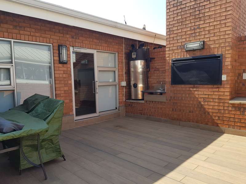 Penthouse in medical center with breathtaking view offers 2 bedrooms both with on suite bathroom, open plan living areas and modern kitchen with granite tops, patio with build in braai, under cover parking Secure access, Mezzanine floors