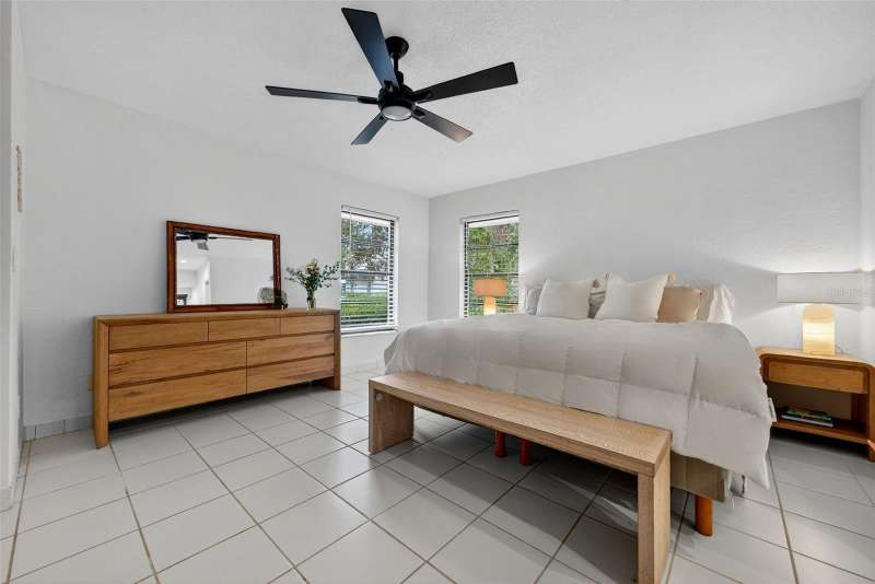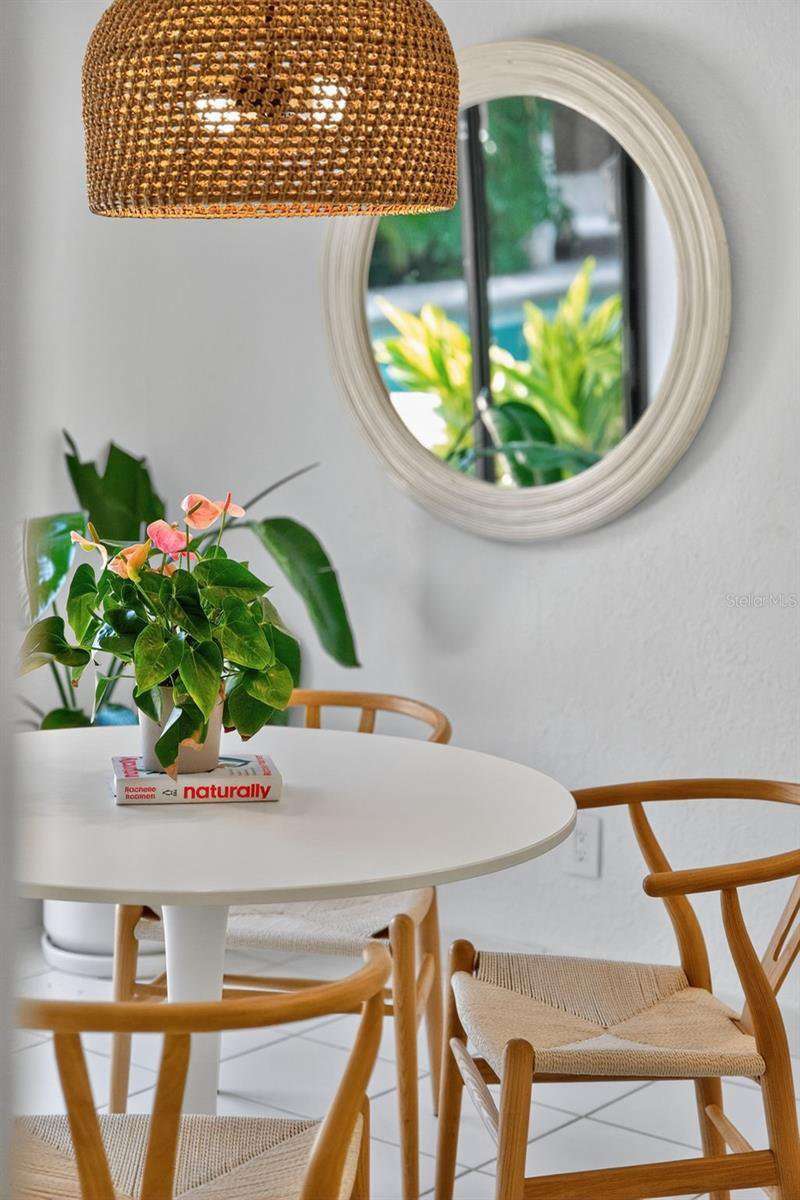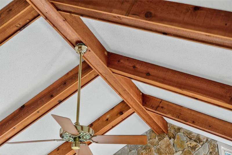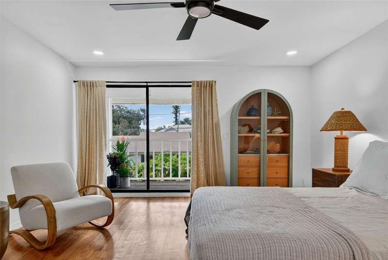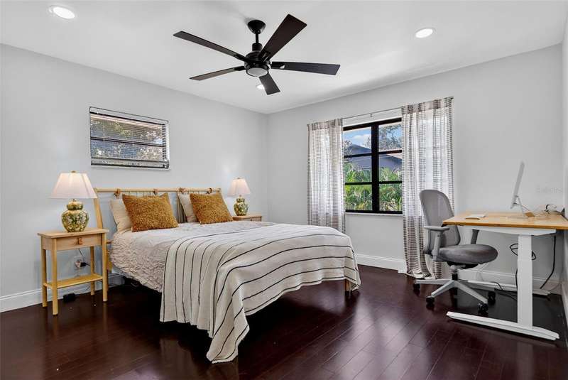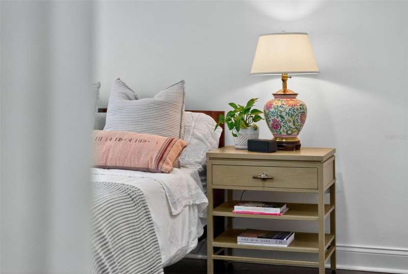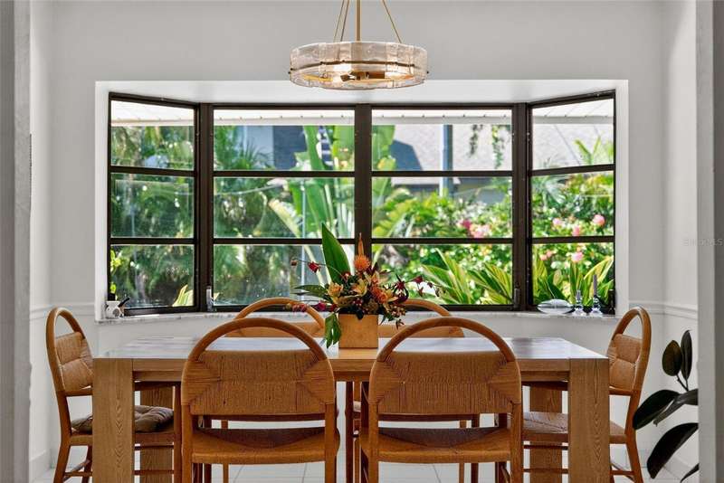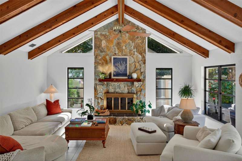 On Serpentine Drive in the Pink Streets, distinct architectural homes sit under mature pines and a lush tree canopy. Down a private drive, this property offers rare privacy just blocks from the waterfront parks. Elevated high enough to avoid flood insurance at this time, with no history of flooding. The double lot spans over a quarter acre with a pool and is within walking distance to parks and the water. Honeybees may be included for the aspiring beekeeper, making this retreat a unique opportunity for a nature lover. Inside, you feel one with nature with the exposed wood beams in the vaulted living room, perfectly framed around a fireplace where natural light pours in throughout the day. The thoughtful layout includes four bedrooms each with it's own walk-in closet, two and a half baths, a downstairs primary suite, and a two-car garage. Outdoors, travertine pavers add to the natural element around the salt-water pool, a tropical oasis, where flora and fauna thrive. The fenced yard offers space where native sunshine mimosa blooms with plenty of room for gardening and entertaining. You'll find plenty of Florida native landscaping for easy maintenance. Recent updates provide peace of mind, including a new roof (2020), updated electrical systems (2023), and HVAC system (2025) with warranty. Within walking distance to two neighborhood parks, moments from a public boat ramp and access to downtown and the beaches. Opportunities to call the Pink Streets home are few and far between. A true gem for it's location, privacy, elevation and tranquility!