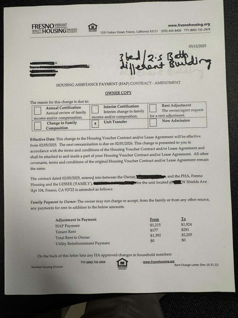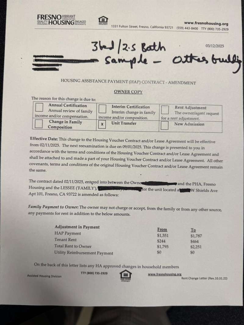 Type: 4-Unit Townhouse-Style Multi-FamilyStatus: Fully Occupied | Turnkey ConditionList Price:? Financial SnapshotItem AmountCurrent Gross Rents $6,888/month ($82,656/year)HOA Dues $1,250/monthProjected Market Rents ~$7,800/monthOccupancy 100% (All Units Rented)Tenant Type Voucher Compatible (Within Fresno Housing Authority Limits)Unit Breakdown & Current Rents:Unit Beds/Baths Rent Notes101 3 Bed / 2.5 Bath $1,874 Private Yard, Garage102 2 Bed / 2.5 Bath $1,505 -103 2 Bed / 2.5 Bath $1,545 -104 3 Bed / 2.5 Bath $1,964 Corner Unit? Property Highlights4 Total Units in a secure gated communityTownhouse-style layouts with private fenced yardsPrivate 1-car garages + additional tenant parkingWasher/dryer hookups in every unitRecently updated:Interiors freshly painted for new tenantsExterior repainted 4 months agoStrong tenant appeal with easy access to Hwy 99? Included in HOA ($1,250/month)Water, sewer, and garbageExterior maintenanceLandscaping and common area careSecurity and gated access? Investment Highlights? Turnkey, fully occupied with immediate positive cash flow? Low-maintenanceHOA handles exterior & common areas? Voucher-compatible rents ensure strong, consistent demand? Future upside potentialmarket rents support ~$7,800/month? Ideal for investors returns in a growing rental market