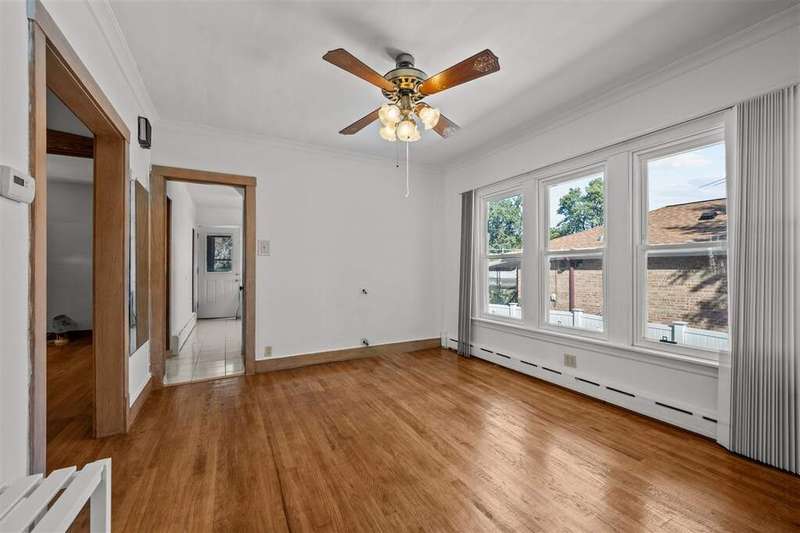 Well-maintained and upgraded Portage Park bungalow! This pretty white home with fenced yard is located on a quiet tree-lined street. Enter to find a welcoming enclosed porch with windows on three sides, and hardwood floors. The first floor features an open floor plan with a large central living area, hardwood floors and large windows. The sunny and spacious living room is open to the dining room. Nearby, there are two bedrooms with hardwood floors and spacious closets, an updated hallway bathroom with white fixtures, and an updated kitchen with white cabinetry and large walk-in pantry. From the kitchen, step onto the rear enclosed porch; it is a great spot to store coats and boots, and to enjoy views of the appealing rear yard! An interior staircase near the kitchen leads to the 2nd floor. It has a spacious family room, the 3rd bedroom and unfinished attic storage. The lower level has windows above grade, an expansive recreation area, the 4th bedroom, a full bathroom and large utility room. Don't miss this wonderful opportunity--a lovely Portage Park home that is convenient to EVERYTHING! Sold "AS IS".