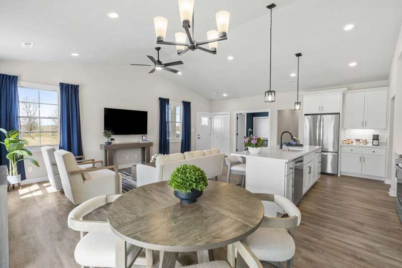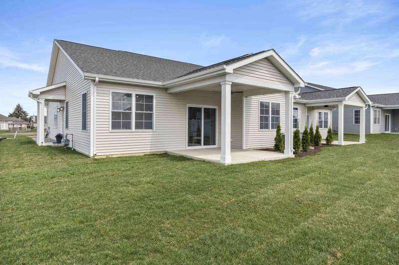 SALES MODEL. Our custom-built paired villas boast 3 spacious bedrooms, one with a flexible office setup. Open concept great-room, kitchen island, stainless steel appliances, and premium Silver Line windows that fill the 1500 square feet of living space with natural light. These Custom-Built Villas are packed with quality finishes, and future pre-sold units offer plenty of selections for owners who want a more customized home. Finished homes include Luxury Vinyl Plank, Tile, and Carpet Flooring. Kitchens with Quartz Countertops, soft-close cabinets and drawers, stainless steel kitchen appliances, laundry room with washer & dryer, Ceiling Fans in all Bedrooms and Great Room, Rubbermaid closet shelving, and stone masonry accents. Also includes 80percent Carrier Furnace, 14 Seer A/C, and 40gal hot water tank.In Future pre-sold homes, enjoy the vinyl planking floors throughout, or choose to have carpeting in the bedrooms. You'll appreciate the comfort of a finished, insulated garage, & the convenience of an over-sized back patio with options for enclosed finishes. Designed for a carefree lifestyle, these maintenance-free homes offer the perfect blend of comfort and sophistication. Residents of The Arbors are also invited to enjoy the Community Clubhouse, and outdoor pergola on the 2 maintained ponds.