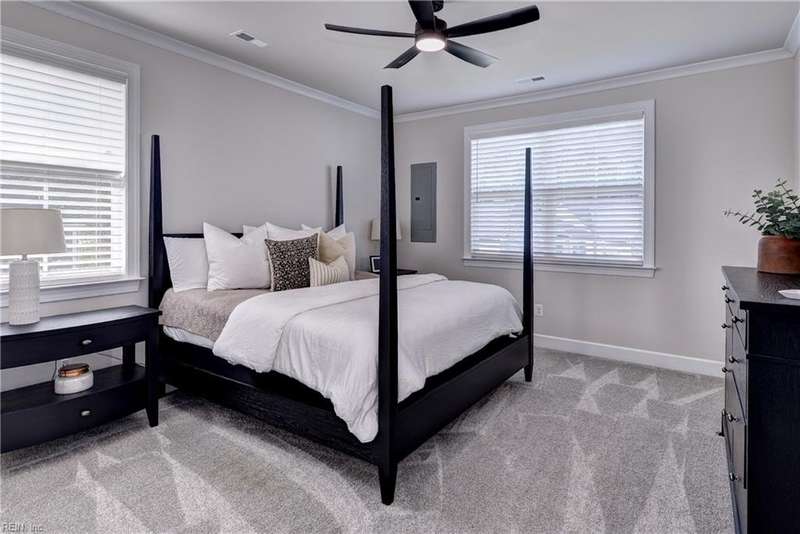 Don't miss this rare opportunity! This fully upgraded end-unit townhome offers luxury and privacy at every turn. The gourmet kitchen is a true showpiece, featuring high-end finishes, GE Profile appliances, abundant counter space, and generous storage. The living room's soaring ceiling and oversized glass doors fill the space with natural light and open to an outdoor patio-perfect for relaxing or entertaining. The first-floor primary suite includes a spacious upgraded closet and a beautifully appointed ensuite bath with elegant finishes. Upstairs, three additional bedrooms & LOFT and two full bathrooms offer wonderful flexibility for guests, a home office, or creative space. A two-car garage (Epoxy floor) provides ample room for parking and storage. New Irrigation system and landscaping. Situated in Colonial Heritage, Williamsburg's premier 55+ resort-style community, you'll enjoy world-class amenities, scenic views, and an active, welcoming lifestyle.