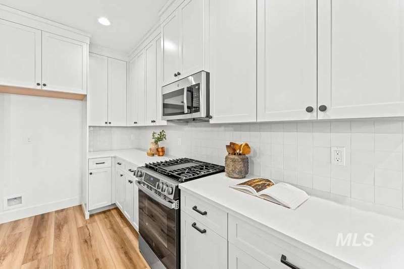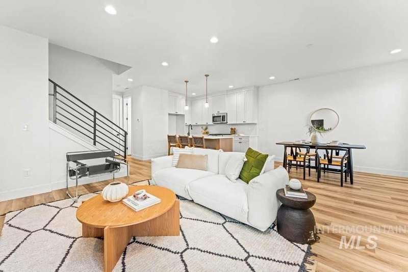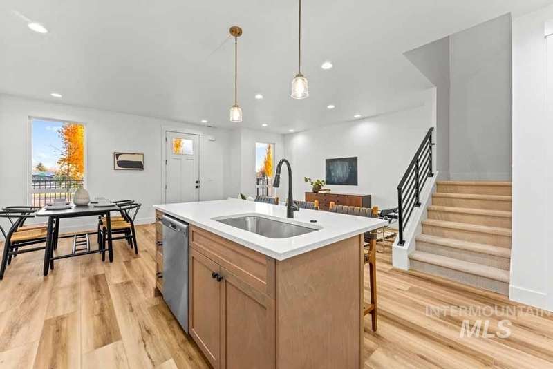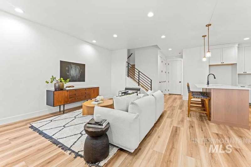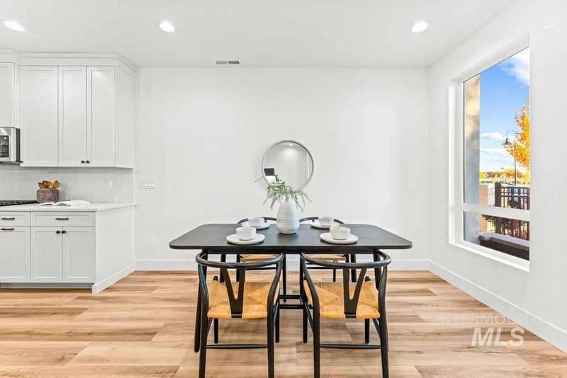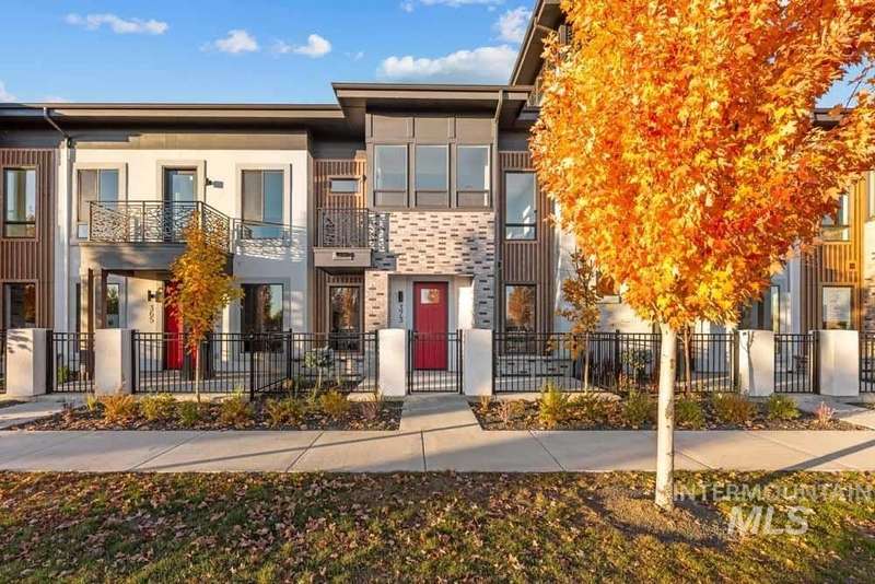 Introducing The Destin at Molinari Park — the newest upgraded floorplan featuring ceiling-height cabinetry, metal railing, and 8-foot doors throughout! Set in the heart of downtown Eagle, this luxury townhome community offers a truly walkable lifestyle just steps from premier dining, shopping, and coffee. Designed for livability, the home showcases 9-foot ceilings, wide-plank LVP flooring, and an open-concept layout with a warm, neutral palette. The kitchen includes white cabinetry, artisan zellige tile backsplash, quartz countertops, and stainless steel appliances with a gas range. Upstairs, enjoy the primary suite, complete with a private balcony, walk-in closet, and spa-inspired bath featuring a frameless glass walk-in shower and dual vanities. A two-car garage with a hidden utility closet and tankless water heater adds convenience. Live effortlessly with future on-site dining, walking paths, and a dog park — luxury lock-and-leave living in the heart of Eagle!
