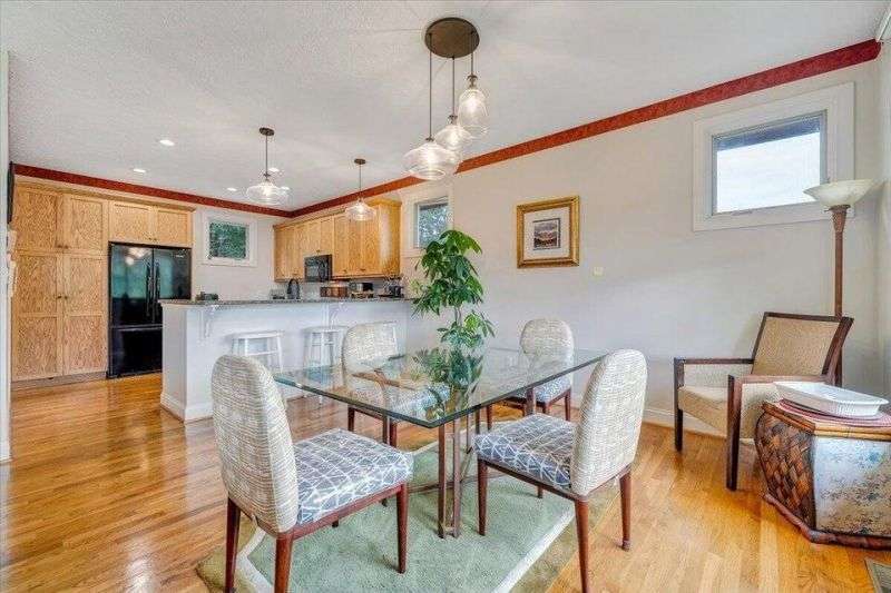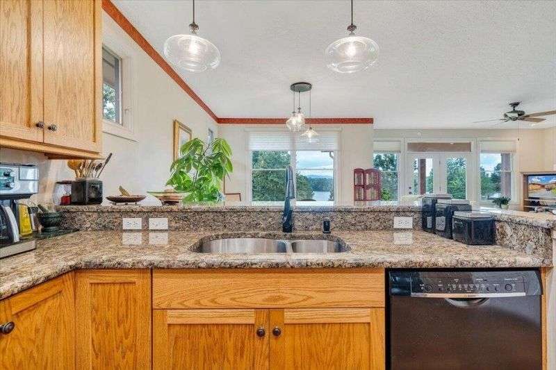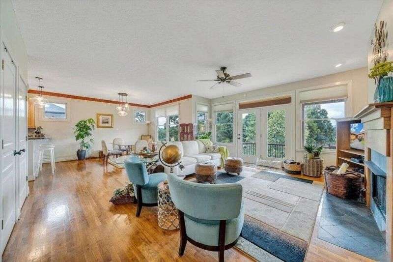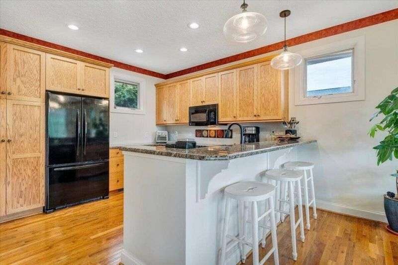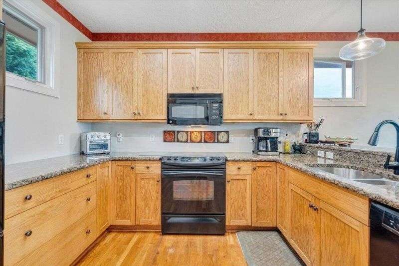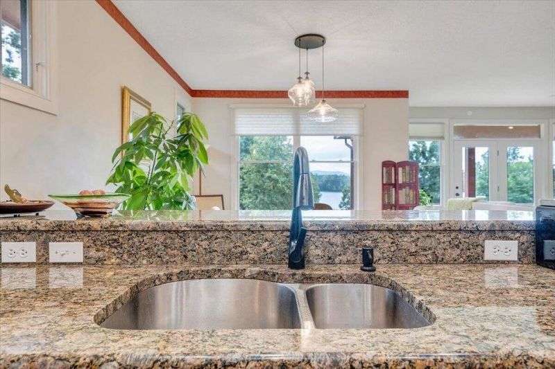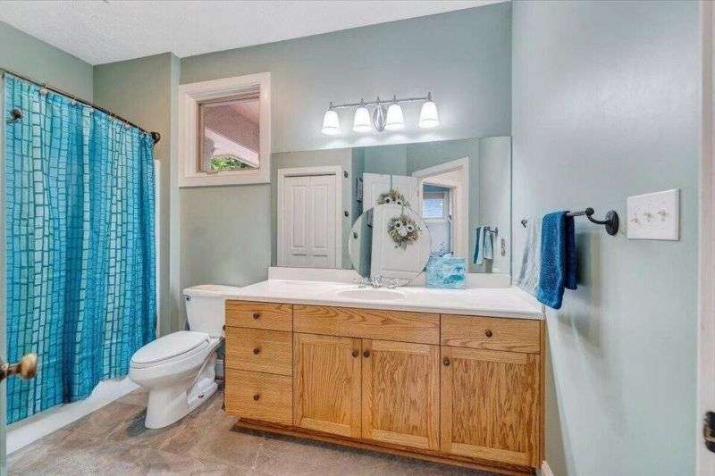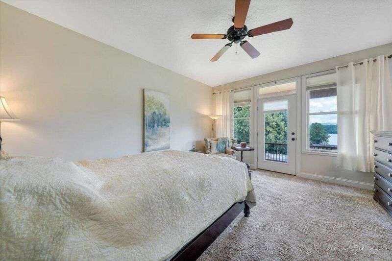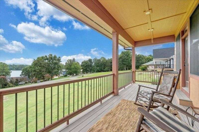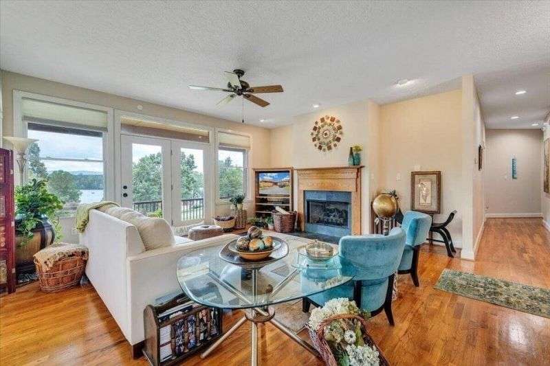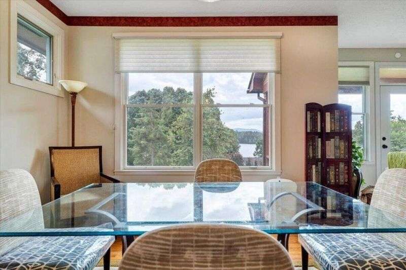 Very well maintained Conway designed contemporary home with impressive attention to detail. The beautiful water and mountain views from the home and rear porches add a connection to lake life that is certain to elevate your everyday enjoyment and relaxation. Generously sized rooms with loads of natural light shine through each window and door on both the main floor and finished lower level. Fine textures of natural oak floors, ceramic tile, and carpet have been thoughtfully selected to endure time without sacrificing quality or comfort. A beautifully finished pumpkin-and-spice colored exterior was recently painted over the long-life exterior siding and trim. The main level open floor plan features a living room with a cozy gas log fireplace and wall-to-wall glass with a French door that
