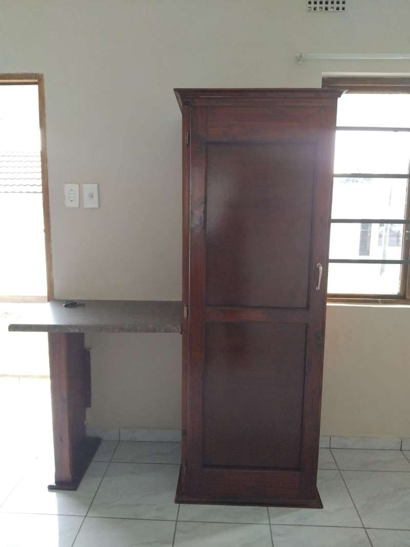 This cozy bachelor apartment offers a practical open-plan layout, perfect for comfortable living. It features a compact kitchen corner, a bedroom area with a single wardrobe, and a private bathroom fitted with a shower and toile