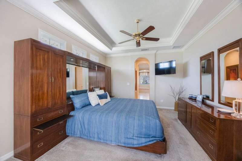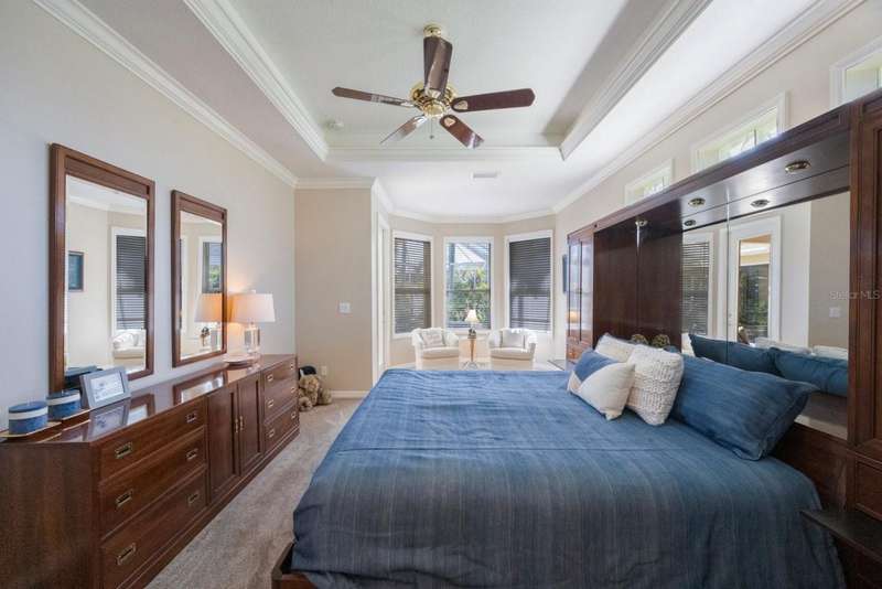 Welcome to this beautifully maintained and thoughtfully upgraded 2,776 sq ft home in the gated community of University Place. This spacious residence features 3 bedrooms, 4 full bathrooms, a second-floor bonus room with full bath, a first-floor office, and stunning indoor-outdoor living-all enhanced by a new roof and new A/C system (2024). Adding elegance and style there is crown molding throughout the home as well as trey ceilings in the primary bedroom and family room.The owner, a skilled carpenter, has added custom built-ins and trim work throughout, including a bonus room entertainment center and a built-in desk, shelving, and trundle bed in one of the secondary bedrooms-bringing charm, functionality, and craftsmanship to every corner. The open-concept kitchen and family room serve as the heart of the home, showcasing timeless cherry cabinetry, a center island, breakfast bar, and a cozy eat-in kitchen banquette. The formal living and dining areas provide a refined space for entertaining.The primary suite is a private retreat with two walk-in closets and a spa-style ensuite bathroom featuring split vanities, a soaking tub, and a walk-in shower. Two additional bedrooms each have access to full baths, offering privacy and comfort.Upstairs, the bonus room offers endless flexibility-perfect for a guest suite, home theater, or playroom-with its own full bathroom and custom built-ins. The first floor office features sliding glass doors to the lanai and pool area, ideal for a peaceful and productive work-from-home setup.Enjoy Florida's best lifestyle with sliding glass doors in the family room that open completely to the expansive covered lanai and private pool-blending indoor and outdoor spaces seamlessly. The formal living room also includes sliders for easy access to the lanai.In the garage you will find built-in storage closets, cabinets, a second utility sink and microwave, overhead storage and a workbench that can be folded down when not in use.Residents of University Place enjoy two resort-style community pools, a scenic walking path around a large pond, and beautifully maintained green spaces-all within a secure, gated environment.Located just minutes from UTC's premier shopping and dining, world-class Gulf Coast beaches, and with quick access to I-75, this home offers the perfect balance of craftsmanship, comfort, and convenience.