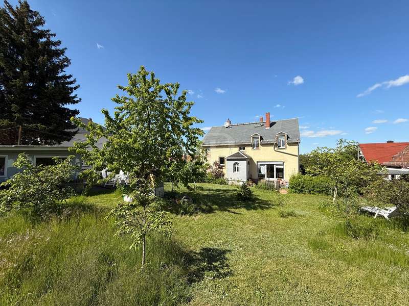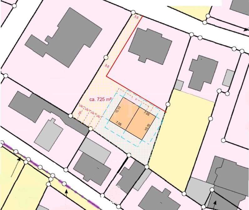 For sale is a building plot of approx. 725 m² with 2 garages, in the second row, in beautiful Radebeul Lindenau. A positive preliminary building application has already been submitted for the plot and it may be built on with a detached house or 2 semi-detached houses. The media-side development is secured from the street and would have to be led onto the plot. Rights of way are also secured in the land register of the adjacent property upon sale. The plot can be built on with one detached house or 2 semi-detached houses, which may have one full storey and an extended roof. The plot is a typical gap development, which may be built on in accordance with §34 BauGB. Within the built-up areas, a project is permitted if it fits in with the character of the immediate surroundings in terms of the type and extent of building use, the construction method and the plot area that is to be built on, and the development is secured. The typical local development in the area consists mainly of single-family houses with pitched roofs and small apartment buildings. Our office has received a preliminary building application, pipeline information and documents for this property. We would be happy to arrange a viewing appointment on site.