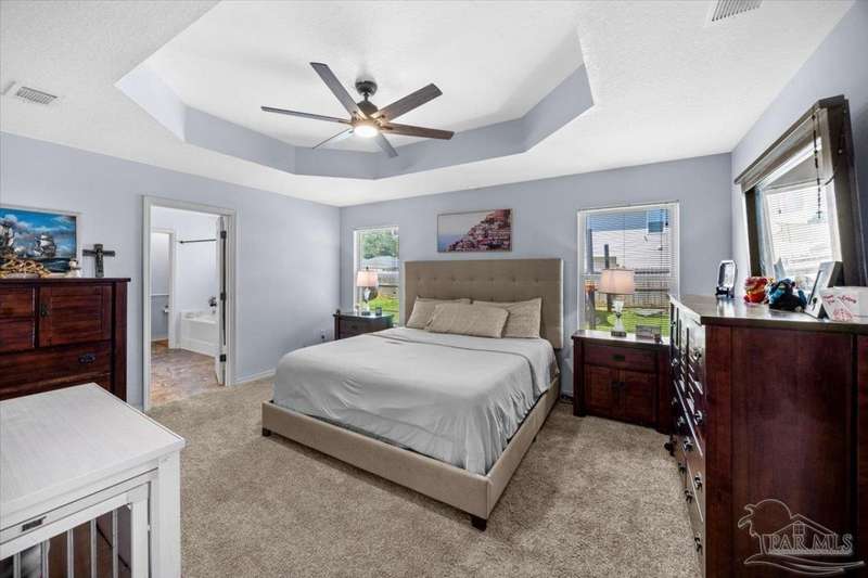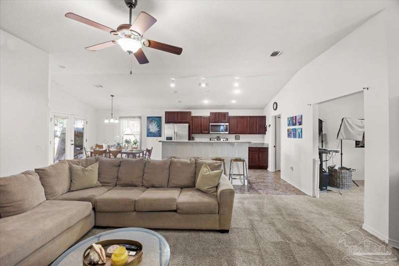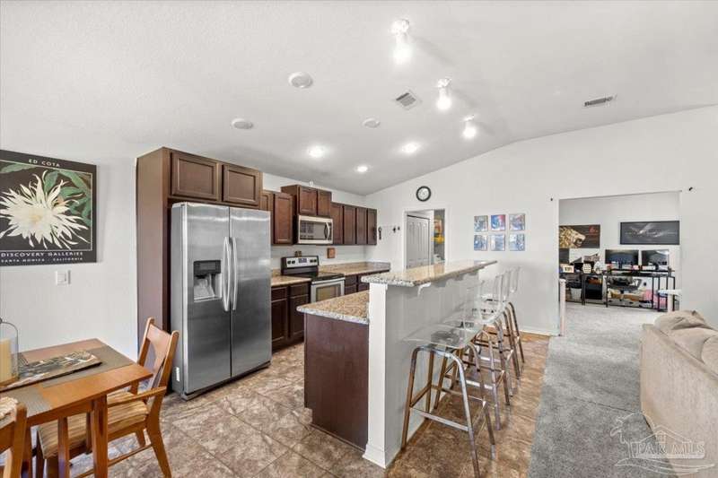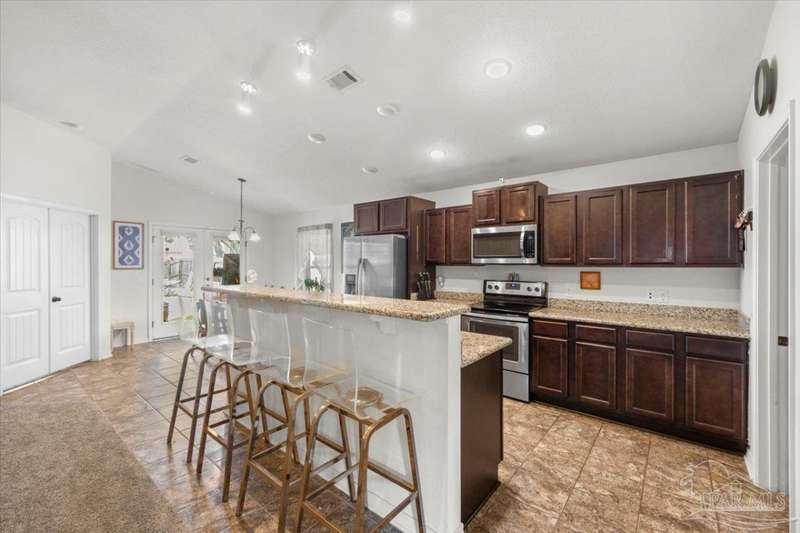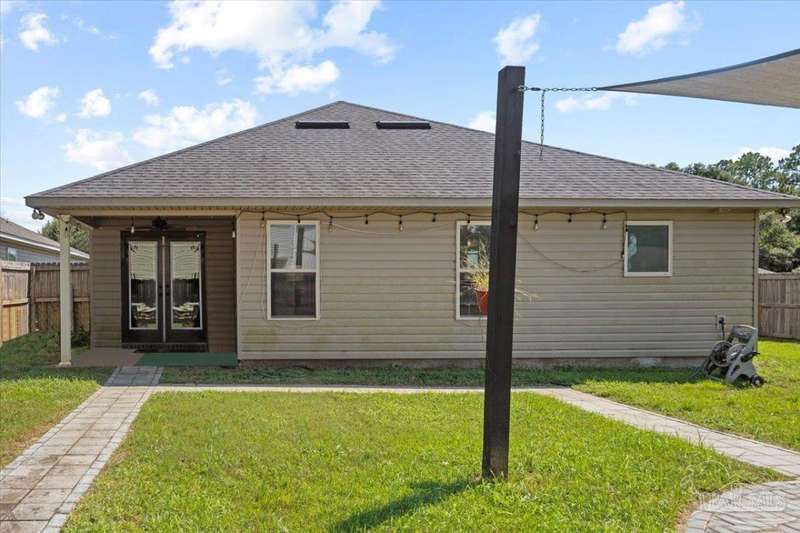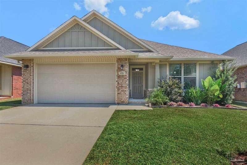 Welcome to your dream home in the desirable Woodlands community in Pace, Florida! This beautifully maintained 3 bedroom, 2 bathroom corner lot home features a spacious open floor plan with a split-bedroom layout for privacy, and a dedicated office. The chef-inspired kitchen boasts granite countertops and stainless steel appliances, flowing seamlessly into the living area for easy entertaining. Step outside to your private backyard oasis with a paver patio, shaded seating area, and custom brick fireplace, perfect for relaxing or hosting gatherings. With a double-car garage, meticulous updates, and a prime location near shopping, dining, parks, and top-rated schools, this move-in ready home offers both comfort and style.