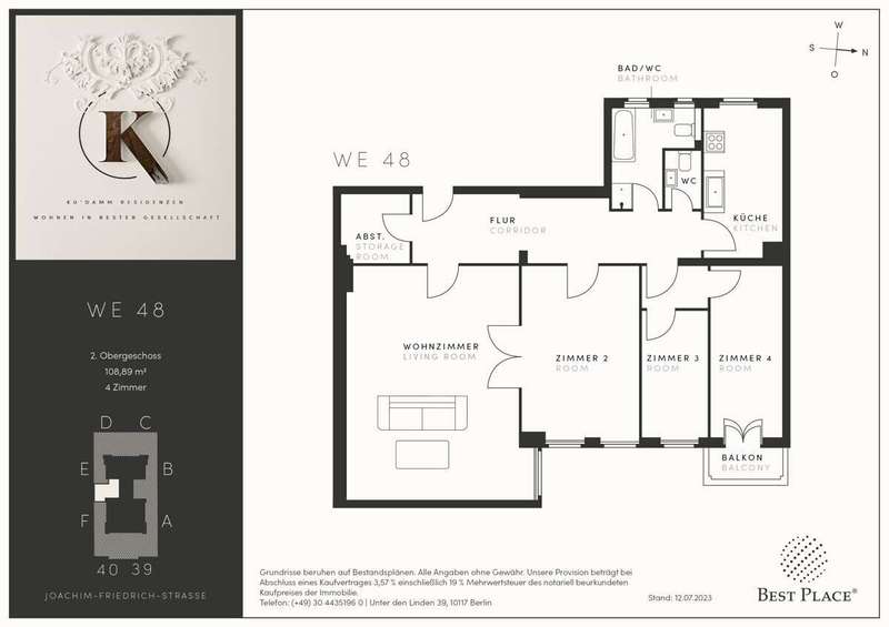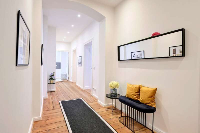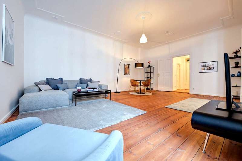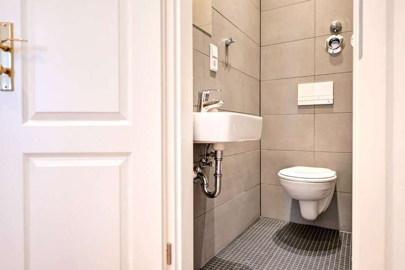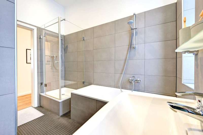 The pretty Wilhelminian style house (built in 1910) has been lovingly renovated in recent years renovated. The attractive 4-room apartment is located in the quiet side wing and is offered free of occupancy. It is easily accessible by elevator and impresses with its classic layout, stucco ceilings, high rooms and real wood floorboards. Ideally all rooms lead off from the hallway. The centerpiece is the generously proportioned living room with a large window, elegant stucco ceiling and plastered walls. A door connects the living room with the adjoining room. Everything breathes light and space. The two small rooms, one of which has access to the balcony, are accessible via a separate hallway. The daylight bathroom and guest bathroom are of high quality. WC with large-format porcelain stoneware, mosaic flooring, bathtub, shower and designer fittings. A special highlight of this apartment is the spacious storage room in the entrance area with plenty of space for jackets, shoes, coats and bags.