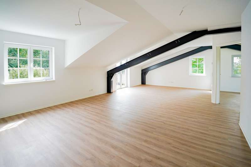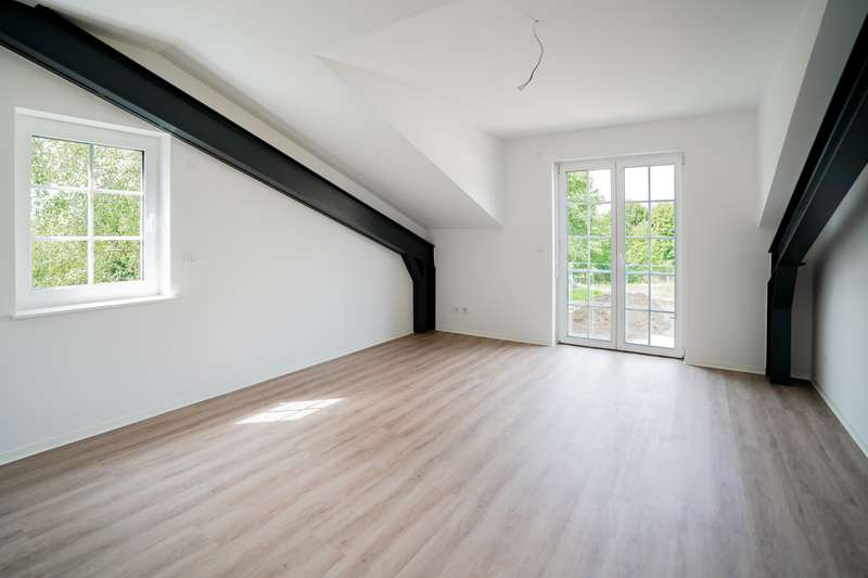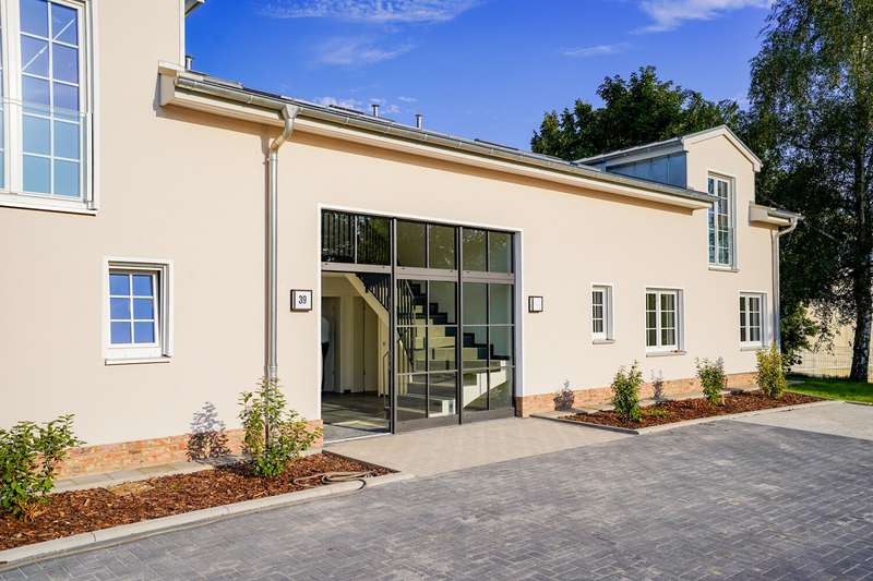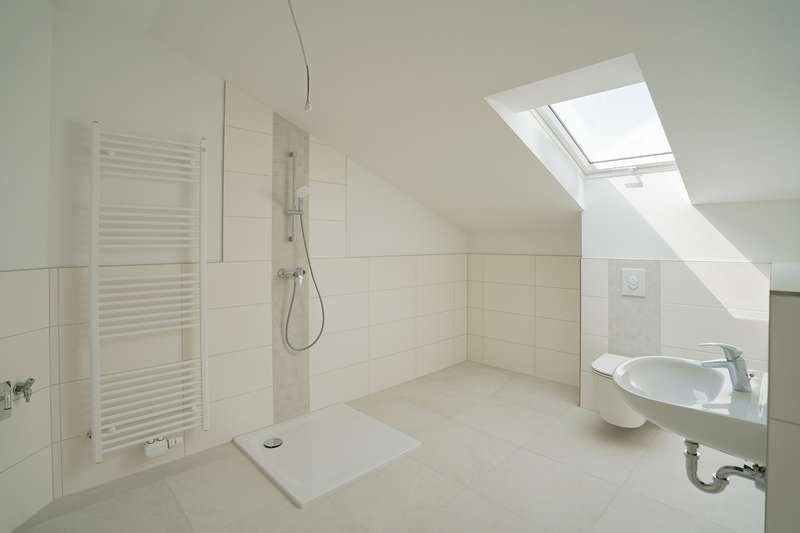 This modern and unique top-floor apartment combines spacious living, stylish furnishings and an excellent location. Two light-flooded rooms, an open-plan kitchen-living room and a balcony that invites you to spend relaxing hours outdoors await you on approx. 74 m². The Biesdorf S-Bahn station is within walking distance, and thanks to the fast connection to the B1, you can reach both Berlin city center and the surrounding area in no time at all. As soon as you enter the apartment, you are greeted by a spacious hallway from which you can easily reach all rooms. The bathroom is modernly tiled and has a comfortable shower, a practical skylight for daylight and ventilation, a towel radiator and a connection for your washing machine. The heart of the apartment is the open-plan living and cooking area measuring approx. 24 m². The kitchen is designed without a fitted kitchen so that you can realize your own personal kitchen dreams. Thanks to double casement windows, the room is particularly bright and is flooded with natural light throughout the day. From the living room, a double-leaf door leads directly onto the approximately 4 m² balcony - perfect for your morning coffee or a cozy end to the day. The bedroom impresses with its size of approx. 18 m² and the floor-to-ceiling windows, which create a bright and friendly atmosphere. Here you will find enough space for a comfortable double bed, wardrobes and other pieces of furniture without having to sacrifice freedom of movement. High-quality vinyl flooring, underfloor heating and roller shutters ensure modern living comfort in all living areas. Triple-glazed windows offer optimum sound and heat insulation, so you can enjoy a pleasant indoor climate at any time of year. The property has its own storage compartment and a secure bicycle rack. A parking space can be rented for €60 per month. There is also a children's playground for families or visitors with children. This apartment is ideal for anyone who values a spacious layout, plenty of natural light and perfect connections - a home to feel at home in modern architecture.