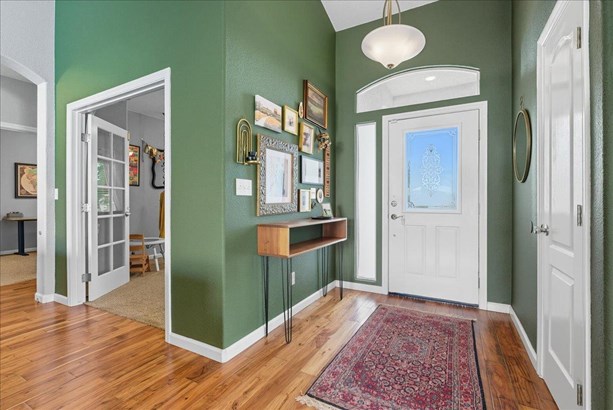 This home blends character, comfort, and style in one thoughtful design. Natural hardwood floors flow throughout the living spaces, while vaulted ceilings and a fireplace create a warm focal point in the living room. The kitchen has been updated with modern countertops, cabinetry, and stainless steel appliances, combining everyday function with timeless appeal.The split floor plan offers privacy for the primary suite, complete with built-ins, while French doors open to a versatile bonus room that could serve as an office, retreat, or fifth bedroom. Three additional bedrooms and a full bath line the hallway, each spacious and inviting. Designer paint and a curated mix of modern and antique touches add depth and charm to every room.Outside, a large covered patio overlooks the gated (removable) lap pool and a lush grassy area, creating a private retreat for both relaxation and entertaining. The home also features solar for energy savings, along with an assumable VA loan at approximately 3.5% interest and a monthly payment around $1,900 (including taxes and insurance)a rare opportunity in today's market. In a desirable Northwest Hanford neighborhood, it balances tranquility with easy access to shopping, dining, and just a short drive to NAS Lemoore.