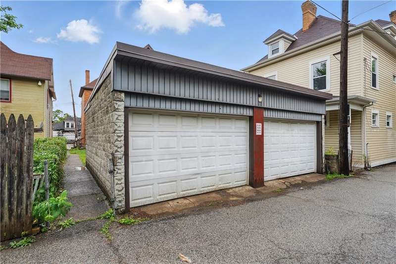 Discover timeless elegance in this solid 3-bedroom brick home located just minutes from the heart of Pittsburgh. From the moment you arrive, the home's character shines through with its beautiful covered front porch and striking brick arches. Inside, ornate woodwork, decorative fireplace mantels, and a graceful staircase exude warmth and sophistication. Durable hardwood flooring flows throughout the first level. The kitchen features sleek stainless appliances. A convenient powder room on the main floor adds to the home's thoughtful design, while the upper-level bathroom has been tastefully remodeled. Enjoy the luxury of the large detached 2-car garage at the rear, eliminating the need for on-street parking and a rare find in the city. This making access to the home a breeze and added convenience. Minutes from shopping, hospitals and bus line. Schedule a tour to see this well-maintained home today! Square footage, taxes, lot size pulled from county website and not guaranteed reliable.