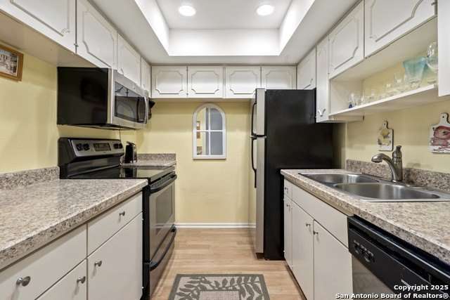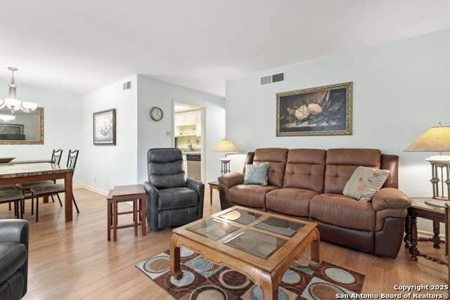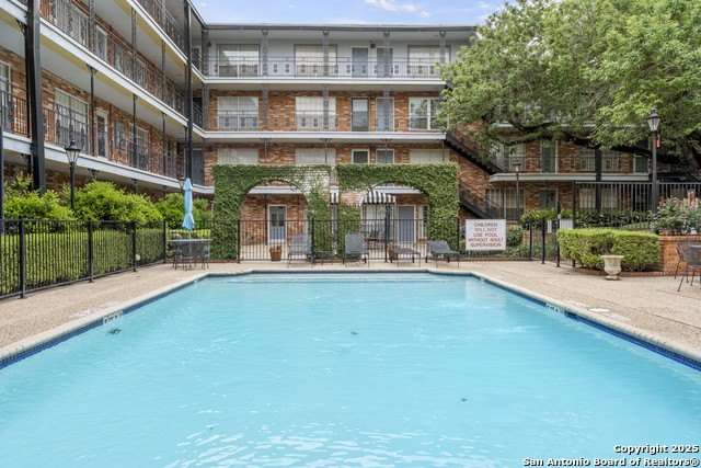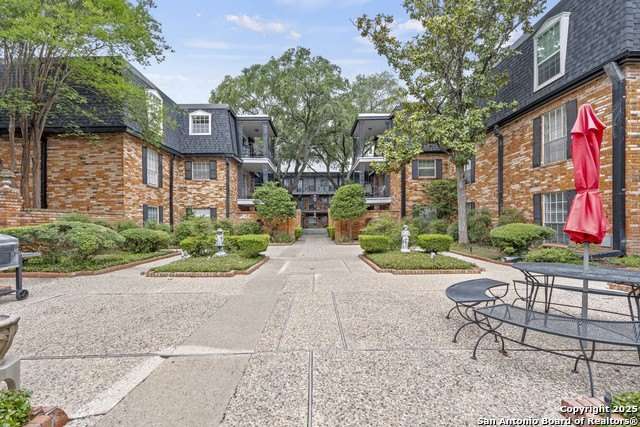 Don't miss this well-cared-for, updated and furnished 2-bedroom, 2-bath condominium on the second floor of the iconic Georgian complex at North New Braunfels and Loop 410. The 934 +/- unit features laminate and ceramic tile flooring, smooth countertops, walk-in closets, partially updated bathrooms, newer kitchen appliances and fixtures, a tasteful color palette, front storm door and much more! With gated entry onto the grounds, this unit is close to the complex's pool and well-manicured courtyard, picnic area, laundry facilities and party room. The Georgian complex is centrally located to shopping and dining. Come see it today.