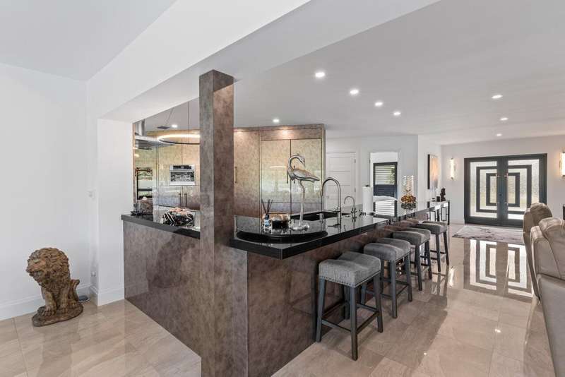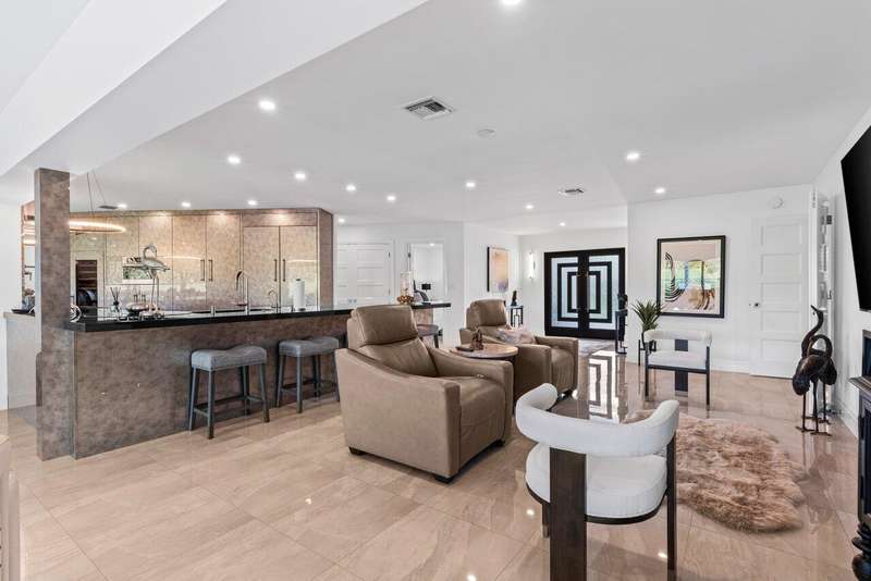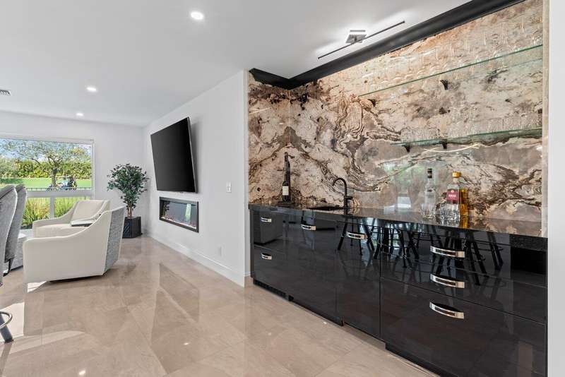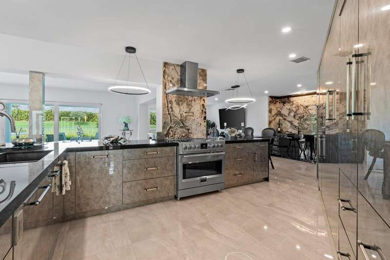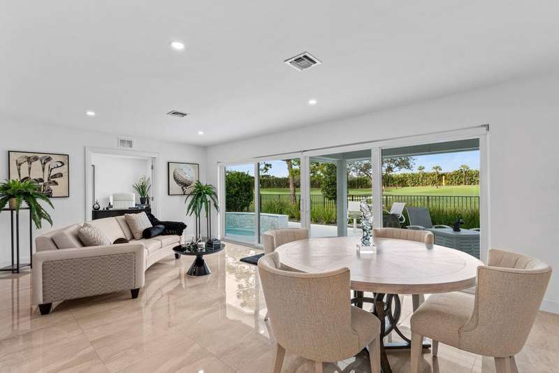 This rarely available 5BR Delray Dunes Golf & Country Club home is a must-see! Overlooking the 6th fairway with views of the 6th green , Completely rebuilt residence is model-ready with top-tier finishes. The reimagined kitchen features Italian cabinetry and appliances, wine fridge, expansive quartz countertops, and a wet bar with ice maker. Upgrades include new bathrooms, porcelain tile flooring throughout, new roof, completely impact, and a private spool. Sophisticatedly staged with custom furniture. As a member of Delray Dunes enjoy a newly renovated 18-hole Pete Dye golf course, Clubhouse, Fitness center, a stunning new pool with bar, expanded outdoor dining, and two illuminated tennis courts. Sellers are open to negotiating the conveyance of all furnishings.