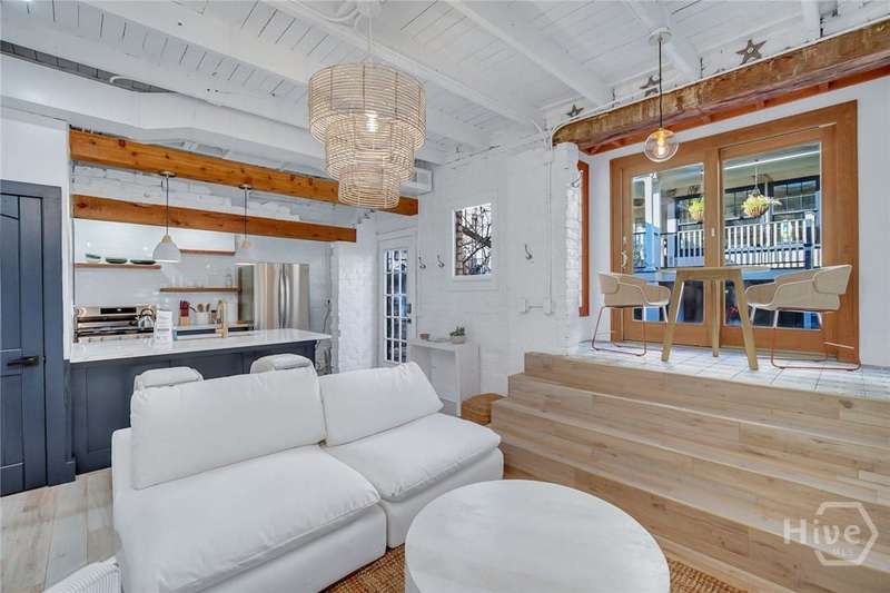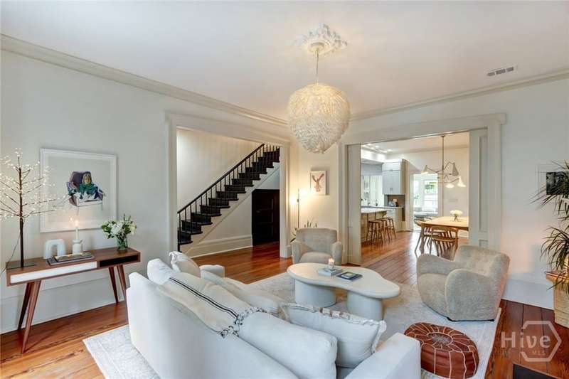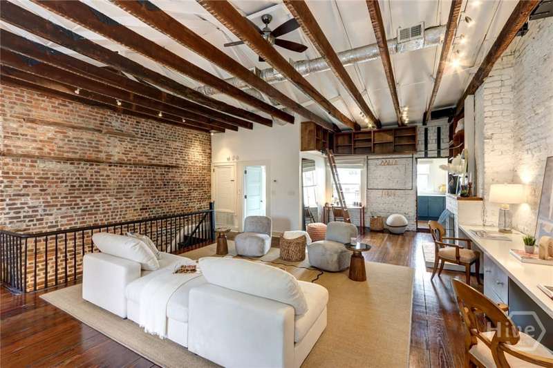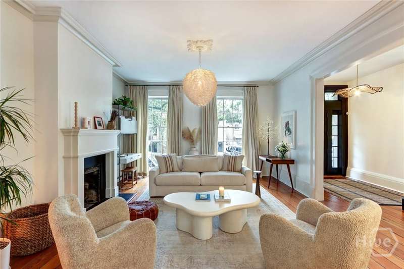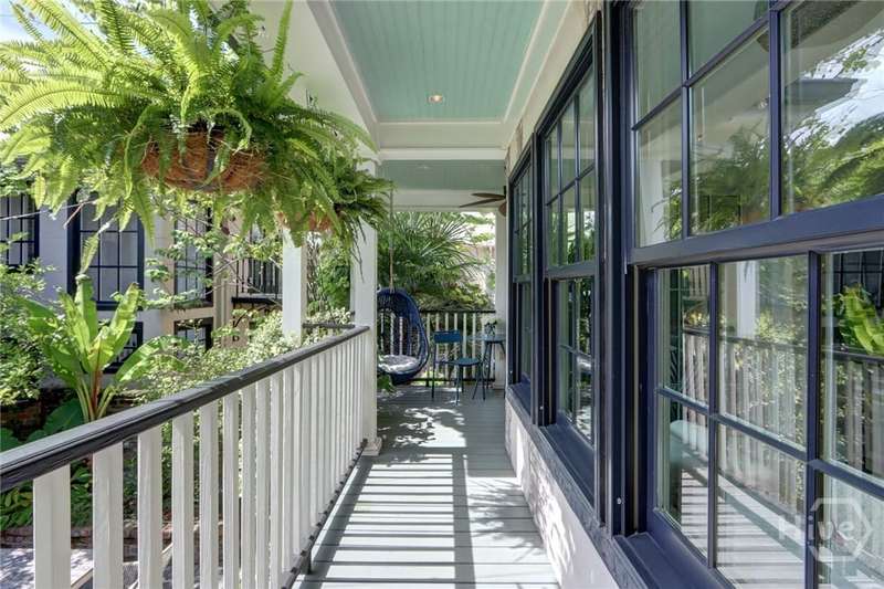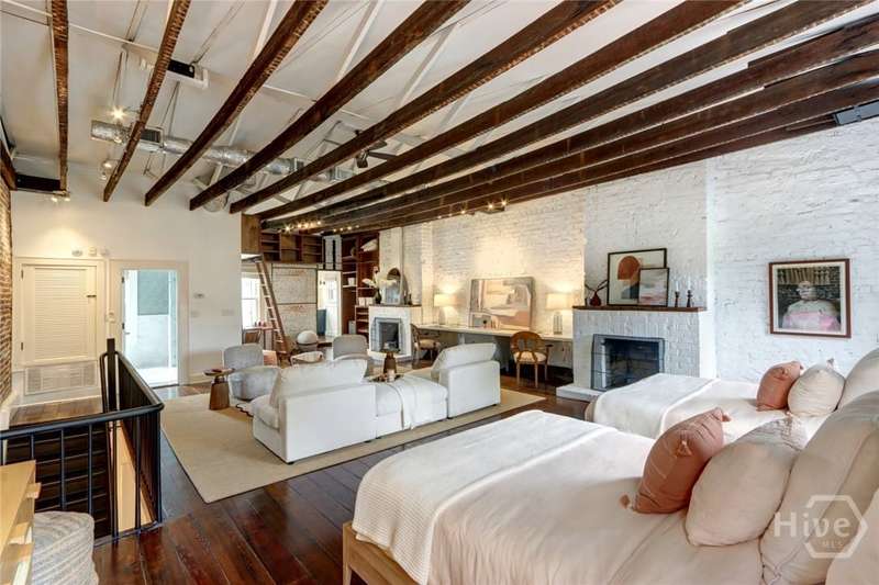 The very definition of Savannahs Modern Lifestyle! Built c.1853 for Eliza Ann Jewett, Savannahs premier Real Estate investor of her time, this storied & unique property exudes understated sophistication. Located on arguably the finest block of the Landmark District, the home has been thoughtfully updated & re-imagined over the years. Original detailing throughout - Hardwoods, exposed Rafters & Brickwork, Mantels, etc. Excellent flow and light Semi-formal Front Parlor, open Concept Kitchen & Dining Area w/ Sunroom & Porch adjacent. Sweeping Master Suite w/ Sitting Area & a 4th floor conversion to a stunning open Loft w/ Sleeping and Lounging Areas (ensuite of course) and private deck. The Garden Lvl Unit is frequently used as Guest Quarters or for Rental Income. An enchanting 2 story Carriage Hse completes the property. Both Grdn Lvl and Carriage Hse have separate exterior property access with Multiple use options. A UNIQUE AND RARE OFFERING FOR TODAY'S LIFESTYLE!