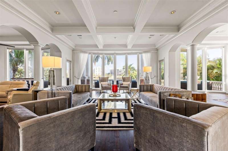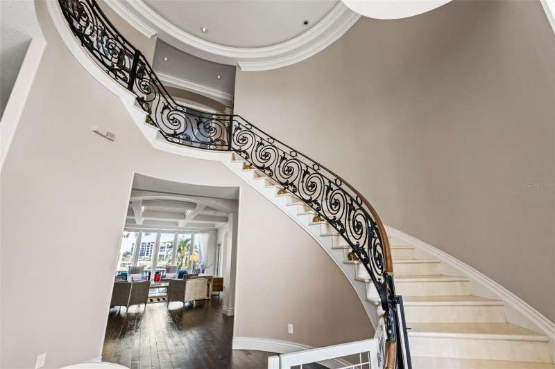 Experience an extraordinary expression of island elegance in this exquisite waterfront residence, nestled within Pinellas County’s most exclusive gated community. Home to fewer than 30 fortunate residents, Belleview Island offers a serene escape that combines unparalleled security, privacy, and breathtaking water views. A short stroll away lies the renowned Belleair Country Club—featuring two 18-hole Donald Ross-designed golf courses, Har-Tru tennis courts, pickleball courts and a junior Olympic-sized swimming pool. The ideal spot for boating enthusiasts, this premier waterfront location provides swift access to Clearwater Pass and the open Gulf waters. Marvel at panoramic water views that serve as the backdrop for the home’s timeless design, exemplifying understated elegance and open-concept living. From the moment you step into the grand foyer, you’ll be captivated by soaring ceilings that elevate every gathering. The gourmet kitchen, outfitted with striking quartz countertops and stainless-steel appliances, accommodates both formal and informal dining with abundant seating. Completing this level are a spacious family room, a formal dining room, and an executive home office—perfect for those who blend luxury living with professional pursuits. Ascend the marble staircase, or opt for the private elevator to reach the lavish primary suite, which boasts a spa-inspired bathroom, a generous walk-in closet, and two balconies overlooking the backyard. An adjoining 14' x 20' room allows flexibility for a nursery, second study, or home gym, catering to your evolving needs. Step outside to one of several balconies, ideal for savoring morning coffee or al fresco dining against a backdrop of idyllic water vistas. The show-stopping 60' x 28' pool is arguably the largest on Belleview Island, offering endless fun in the Florida sun, while a private dock equipped with lifts for two vessels ensures seamless access to your water adventures. This magnificent home is custom tailored for those seeking both refined entertaining spaces and a serene retreat, where every aspect is designed to fulfill the demands of a discerning lifestyle.