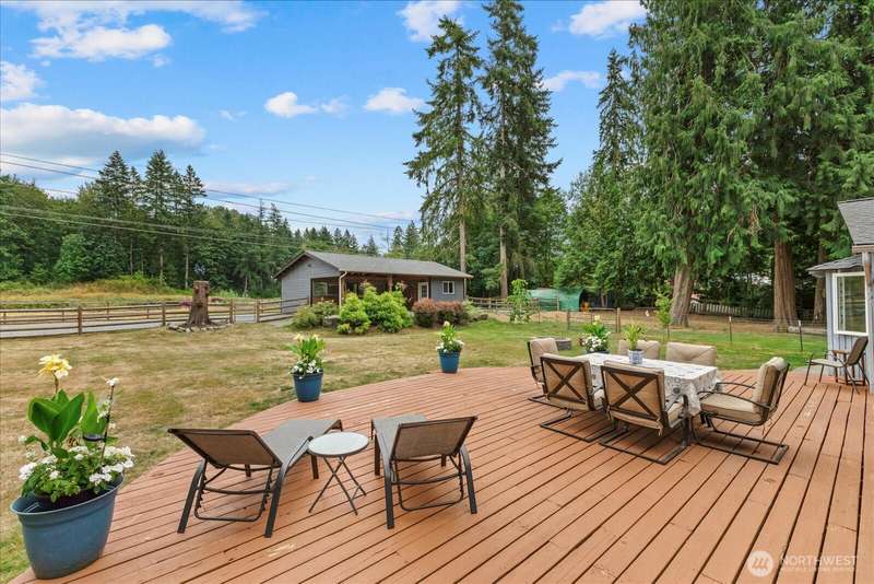 Kent equestrian estate on 2.8 acres! Spacious 3,050 sq ft 5BD/3BA rambler features hand-scraped hardwoods, SmartStrand carpeting, French doors, 2 wood-burning fireplaces, heat pump w/ A/C, and a large entertainer’s deck. Custom 2-stall show barn (2019) offers heated tack room with hot water, 4 pull-out drawers, shelving with saddle & blanket racks, 12’ aisle, 12x12 rubber-matted stalls, 3-ton hay storage, paddock with hoof-grid mud-free footing, 2 separate pastures, 12x24 loafing shed, and 60x80 arena. Oversized 3-car garage includes shop with air compressor lines plus guest apartment suite. Year-round pond, gated entry, well w/ generator, freshly painted barn, septic serviced, and crawlspace with new vapor barrier and sump pump.
