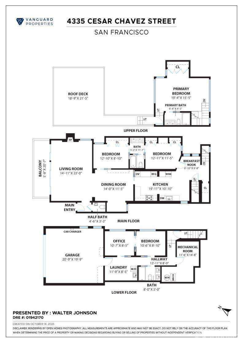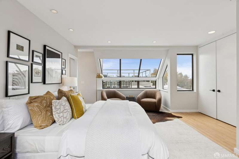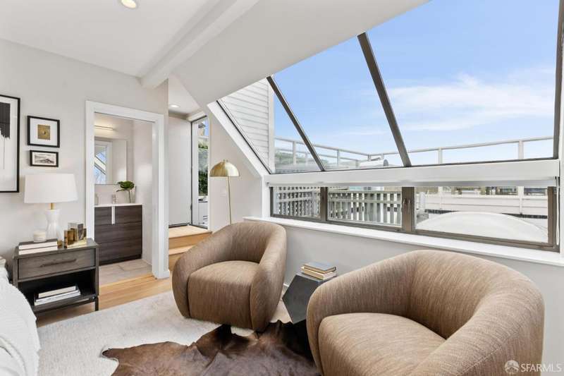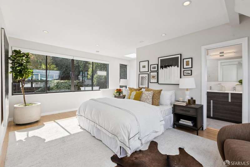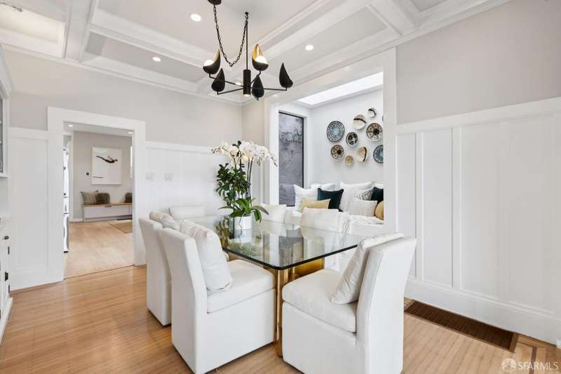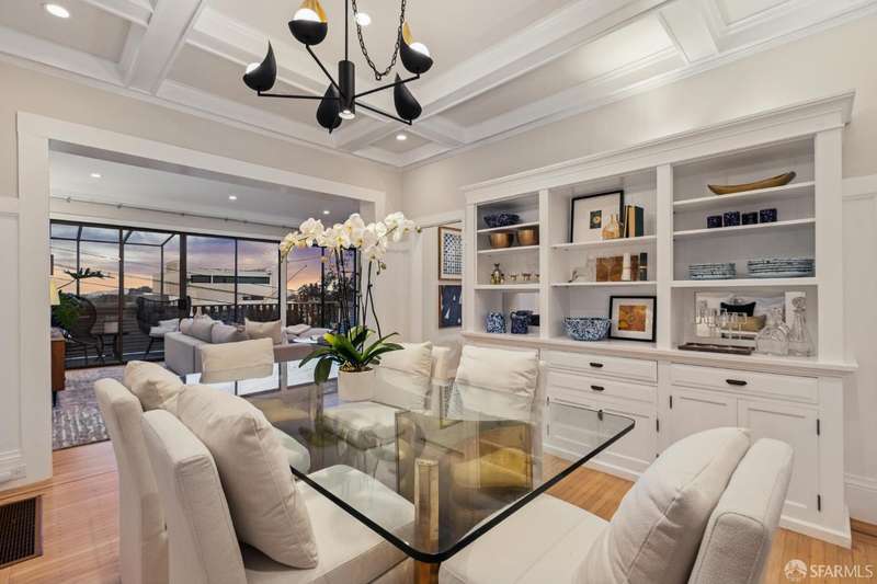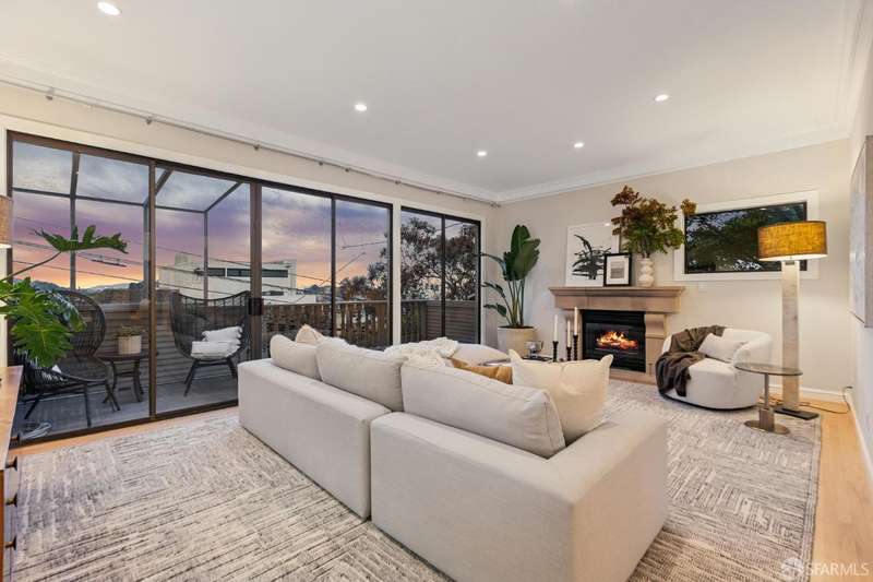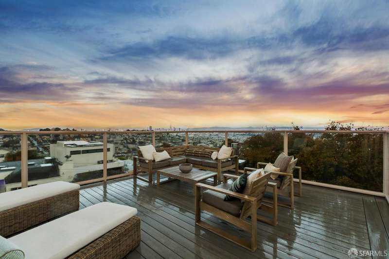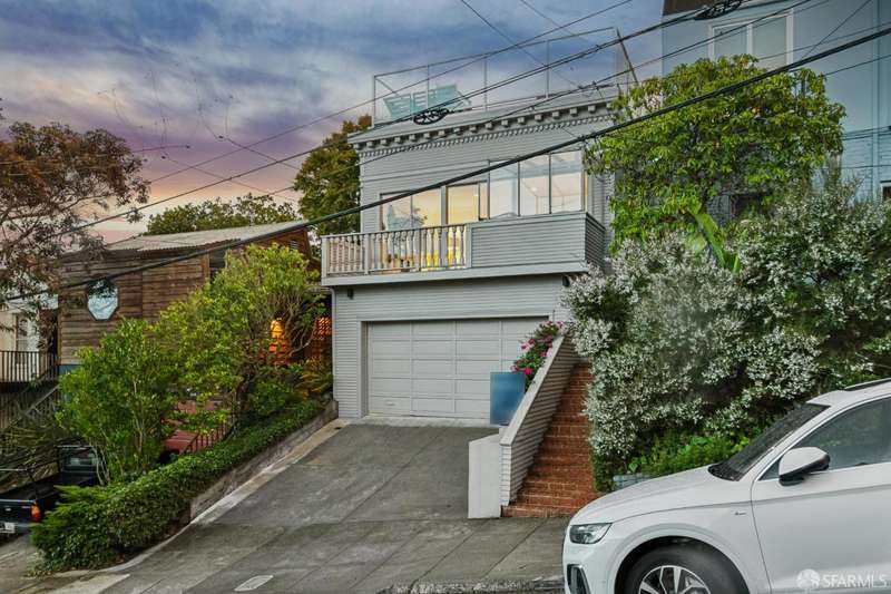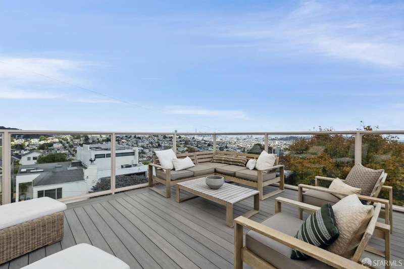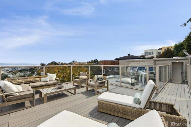 Nestled on a tranquil street in San Francisco's Noe Valley neighborhood, just moments from the vibrant 24th Street shopping corridor, this stunning home features four bedrooms and three and a half baths. The kitchen and bathrooms have been meticulously remodeled, showcasing high-end fixtures and appliances. Enjoy sweeping views from various decks and outdoor living areas. The main level boasts a bright, open floor plan, offering captivating views of downtown and the serene rear yard from both the living and dining rooms. On the top floor, you'll find a spacious primary suite with access to an expansive roof deckideal for entertaining with panoramic views of downtown and Twin Peaks. The beautifully landscaped backyard serves as a private sanctuary, perfect for escaping the city's hustle and bustle. Additional features include a two-car side-by-side garage with internal access, equipped with a Tesla charger, and two additional parking spaces in the driveway.