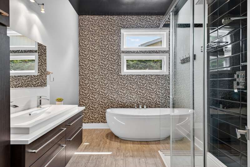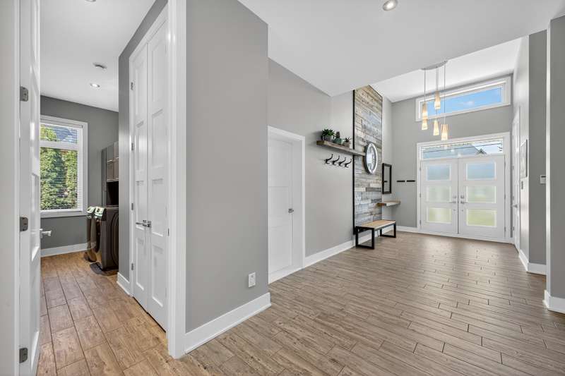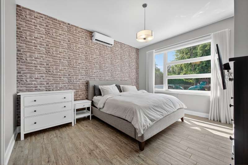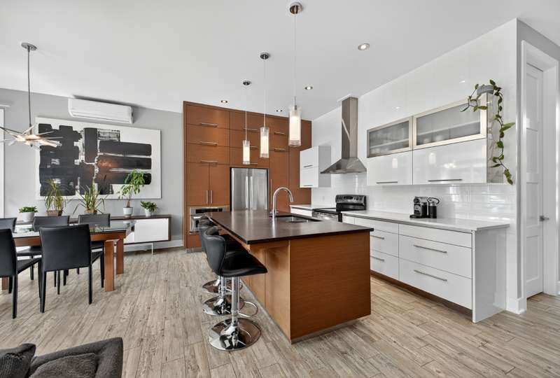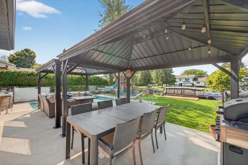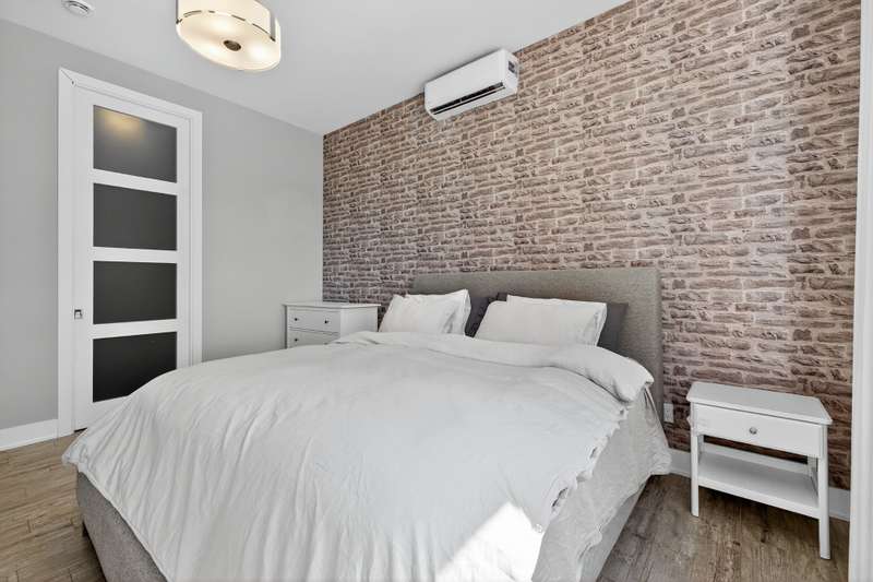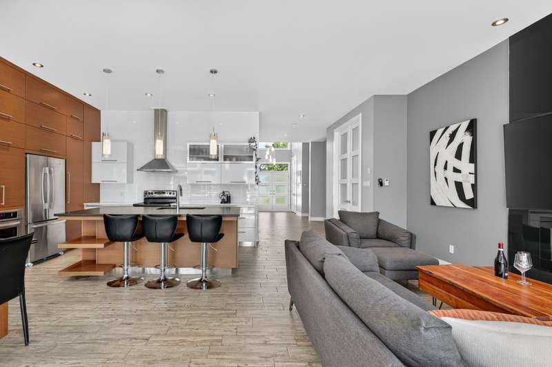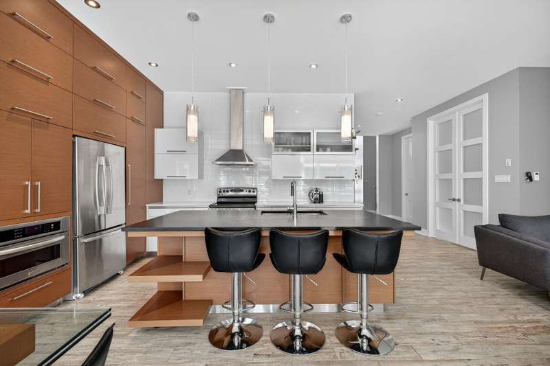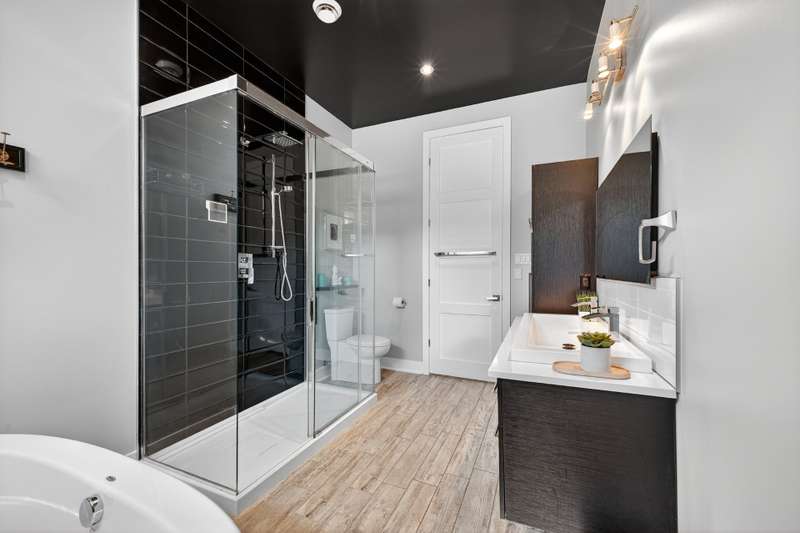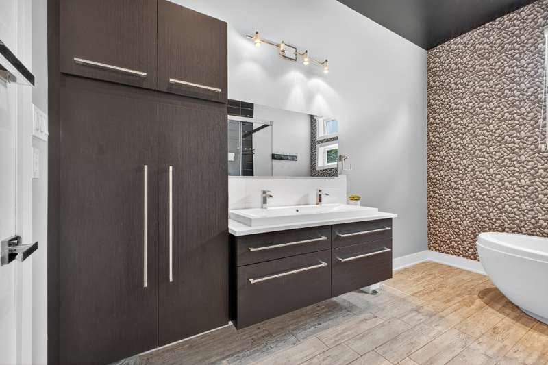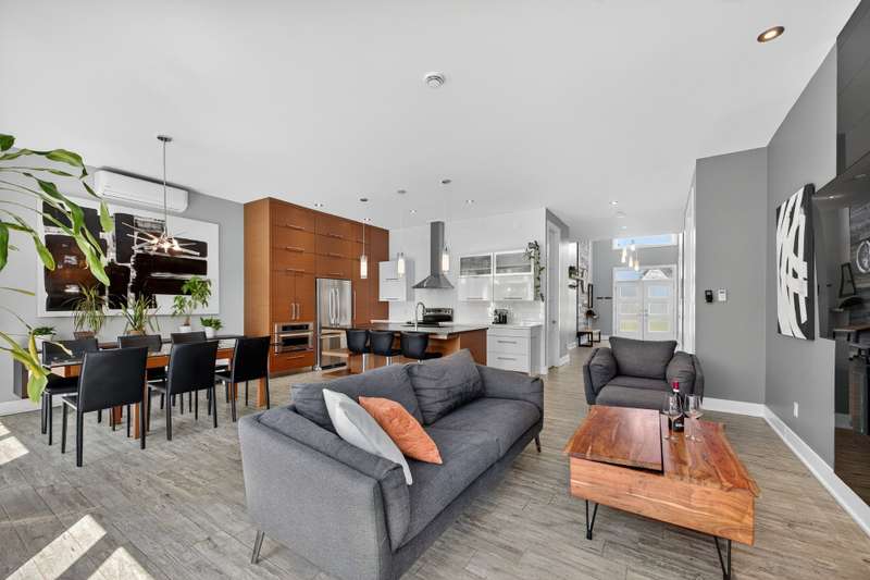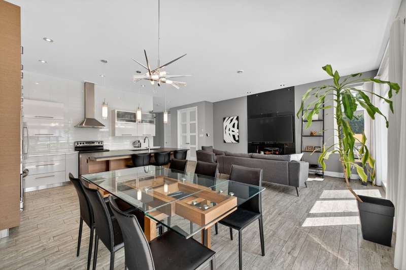 Striking contemporary waterfront residence with canal access to the crystalline waters of Lac Saint-Francois. Built in 2014, this home features high-end fixtures and finishes, 10-foot ceilings, heated floors, and a propane fireplace. The chef's kitchen boasts granite and quartz countertops with custom lacquered cabinetry. Additional highlights include a tiled garage, unistone driveway, and a glass-fenced salt-system inground pool, outdoor spa, spacious patio, waterfront deck, and four sheds for storage. Possibility of dividing the family bathroom to create a second bathroom, offering the option for an ensuite to the primary bedroom.