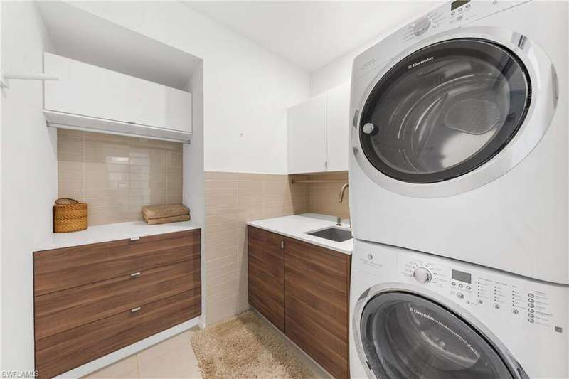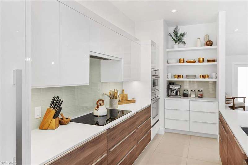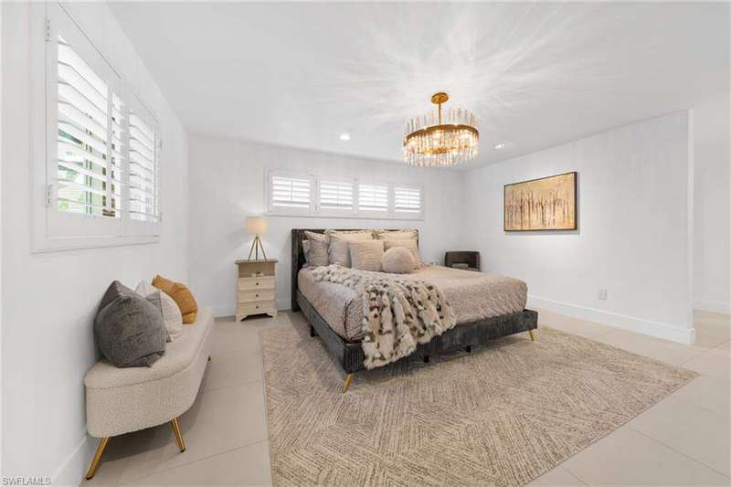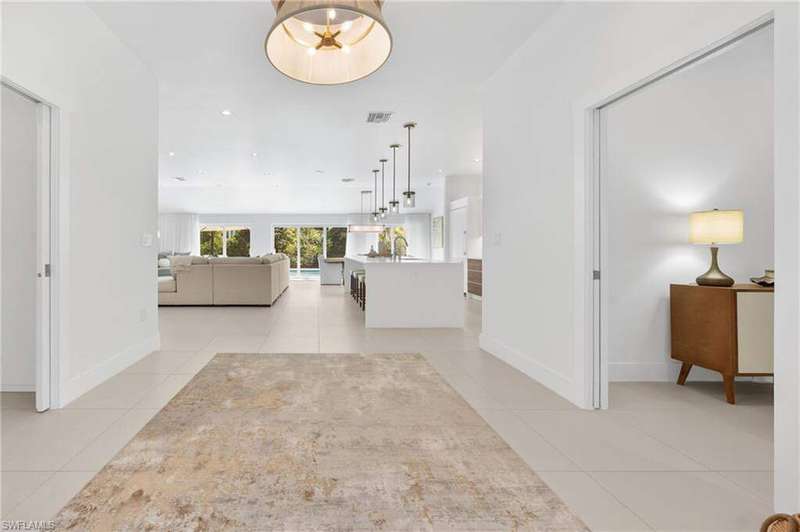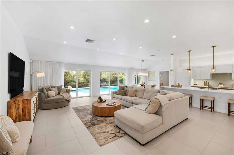 Indulge in a residence where chic sophistication meets serene comfort and luxury. This gorgeous Park Shore three bedroom plus Den and two bathroom, nearly 2,400 Sq. ft of living space, heated pool home leaves nothing to be desired with no stone left unturned with curb appeal that leaves a lasting impression. Situated WEST of US 41, you are just a short drive to the private beach afforded to Park Shore residents, Venetian Village, and tons of other shopping and dining options nearby. Greetings from the French door entryway lead you to the foyer with the den to the right and the kitchen straight ahead. The entertainer and chef alike in you will love the gorgeous kitchen with its oversized quartz island and spillway, modern appliances, coffee bar, and plentiful cabinet and counter space. Impeccable flow is enjoyed from the kitchen to the large living area with a separate wet bar which is flooded by natural light from the doors leading out to the enclosed lanai and pool area. The primary bedroom is a true retreat after a sun filled day with your double vanity, separate glam counter, walk-in closet (with built-ins) and seamless shower and tub. The den along with the two guest bedrooms enjoy tons of natural light along with easy access to the second full bathroom. Your private enclosed lanai with its gorgeous heated pool is the perfect setting for an evening spent at home or a gathering. The grounds beyond the portrait screens are stunning and will leave even the most discerning landscape architect green with envy. Sip your morning coffee or tea out on the front courtyard sequestered by mature and tall hedges and a gorgeous stately tree. Peace of mind is enhanced with tile flooring throughout, laundry in residence (with 2 laundry tubs, 2 car garage, and built in shelving in the garage as well. This property sits just 10 minutes from famed 5th Ave S, a 5 minute drive to the beach, and a top rated school system.
