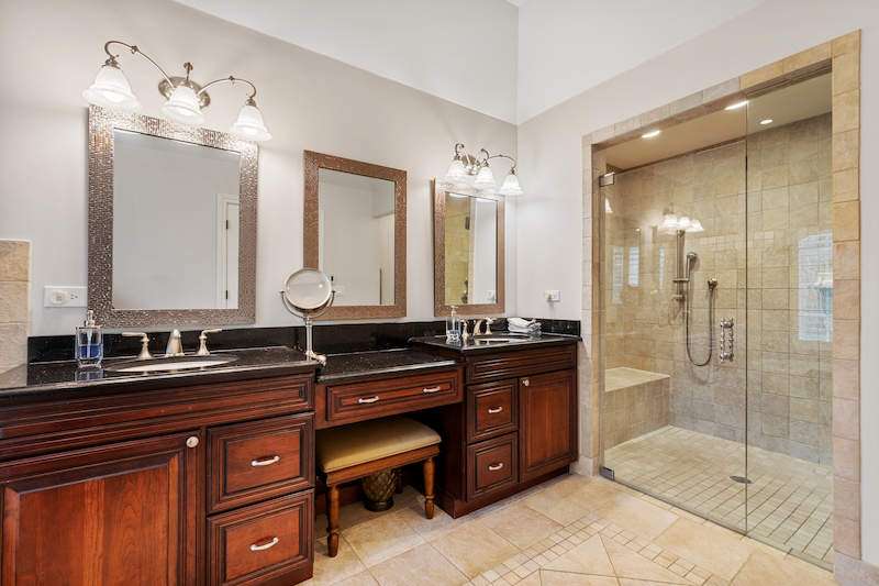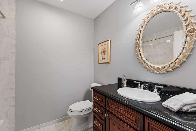 Gorgeous brand new DaVinci synthetic slate roof!! A circular driveway welcomes you to this stunning, impeccably maintained home, offering exceptional curb appeal in a serene cul-de-sac setting. Fully renovated in 2009, this spacious residence is designed for modern family living, with ample room to live, work, and play. The gourmet chef's kitchen is a showstopper, complete with custom cabinetry, granite countertops, top-of-the-line stainless steel appliances, an oversized island with breakfast bar, and a convenient hot water dispenser. The kitchen seamlessly opens to a spectacular family room with a soaring cathedral ceiling, remote-controlled gas fireplace, expansive windows, and French doors leading to a beautiful bluestone patio. The formal dining room features two elegant chandeliers and plantation shutters and connects to a well-appointed butler's pantry with a SubZero beverage fridge-perfect for entertaining. The living room exudes charm with its gas log fireplace, two gorgeous chandeliers, and matching plantation shutters. A spacious first-floor office with an en-suite bathroom can serve as an additional bedroom and includes French doors opening to the backyard. The luxurious first-floor primary suite features tall ceilings, two custom walk-in closets, French doors to the patio, and a spa-like bathroom with heated floors, a double vanity, a Koehler cast-iron jetted tub, and a large walk-in shower with seating. Upstairs, you'll find four generous family bedrooms, three full bathrooms, and a convenient second-floor laundry room. The expansive lower level offers two recreation rooms, an exercise room, a playroom, a storage room, a sixth bedroom, a full bath, and two gas log fireplaces. Additional features include a main-level mudroom with a second laundry area and access to two separate 2.5-car attached garages with epoxy floors and 240V outlets-ideal for electric vehicle charging. Situated on a beautifully landscaped 1.14-acre lot, this home offers privacy, elegance, and functionality-all just minutes from downtown and top-rated schools. Truly a must-see!