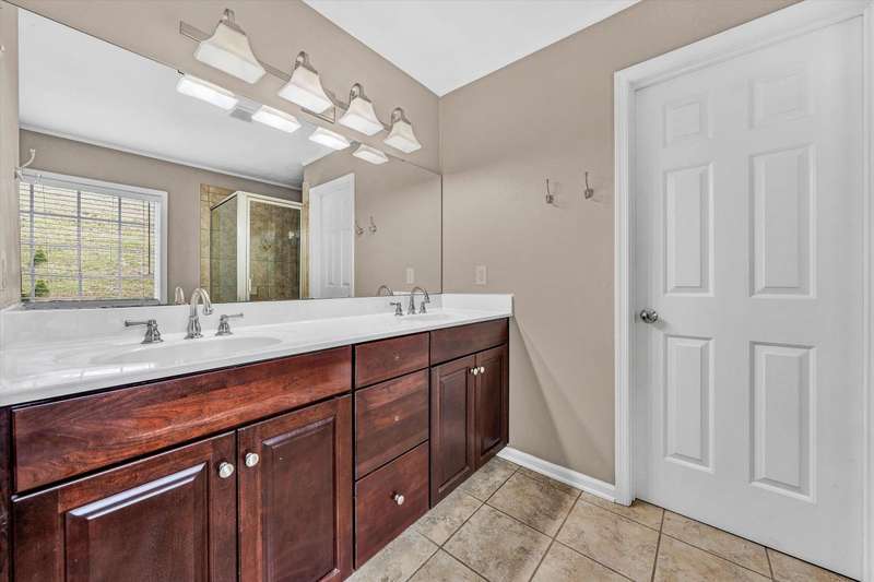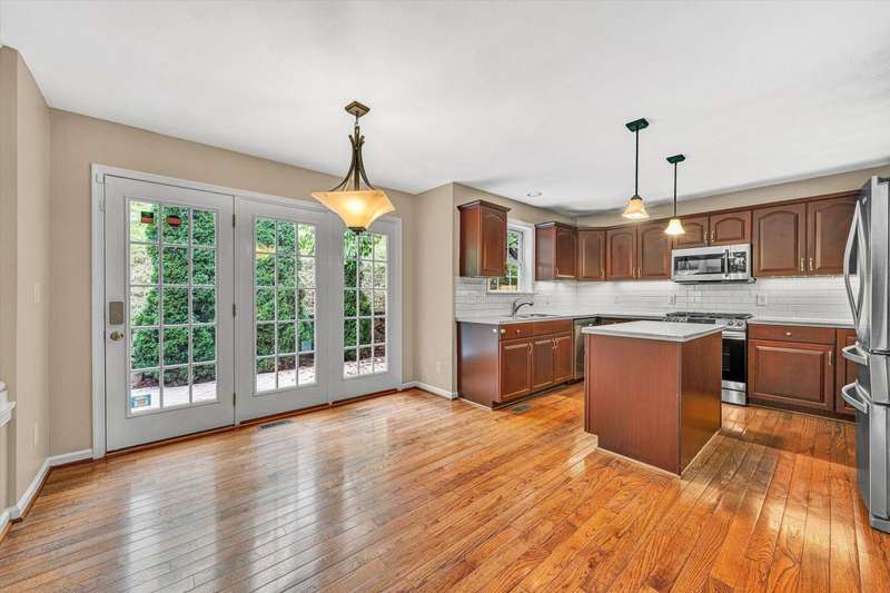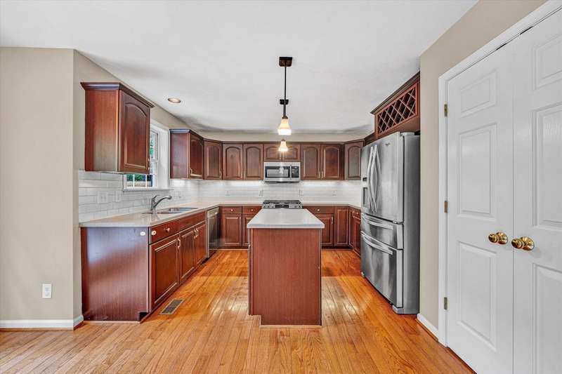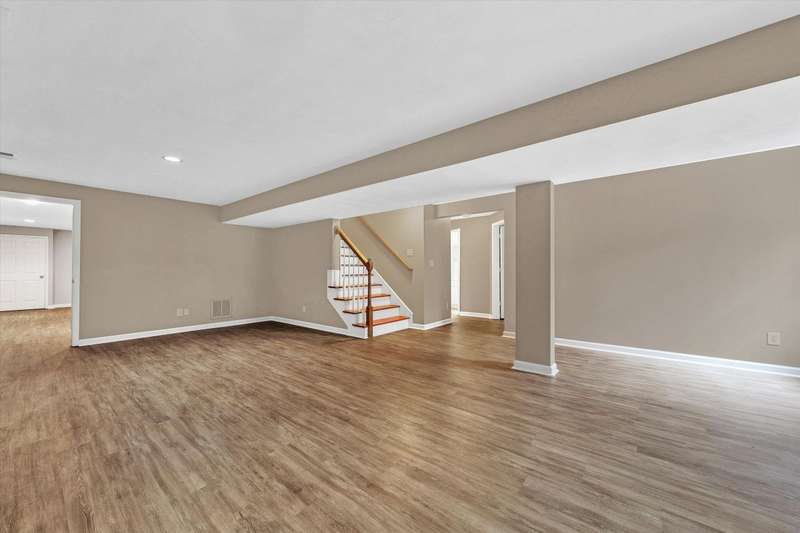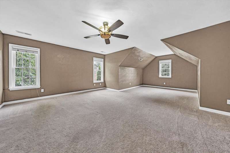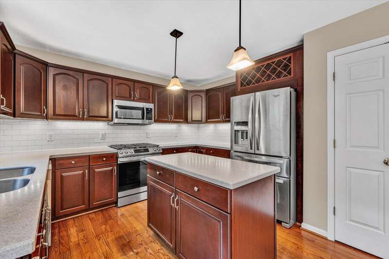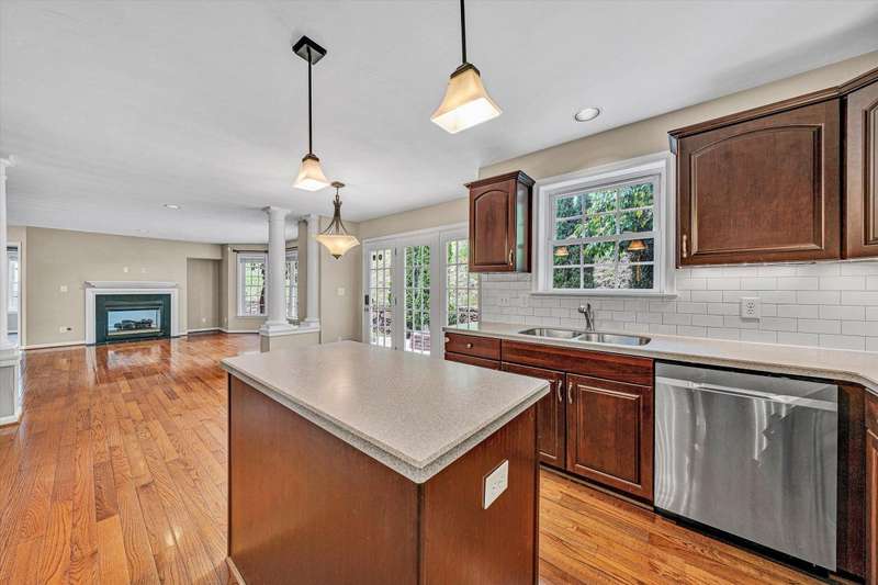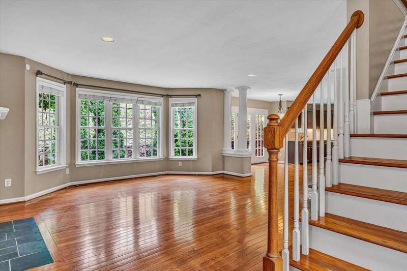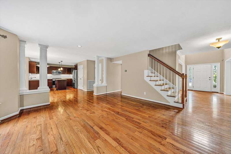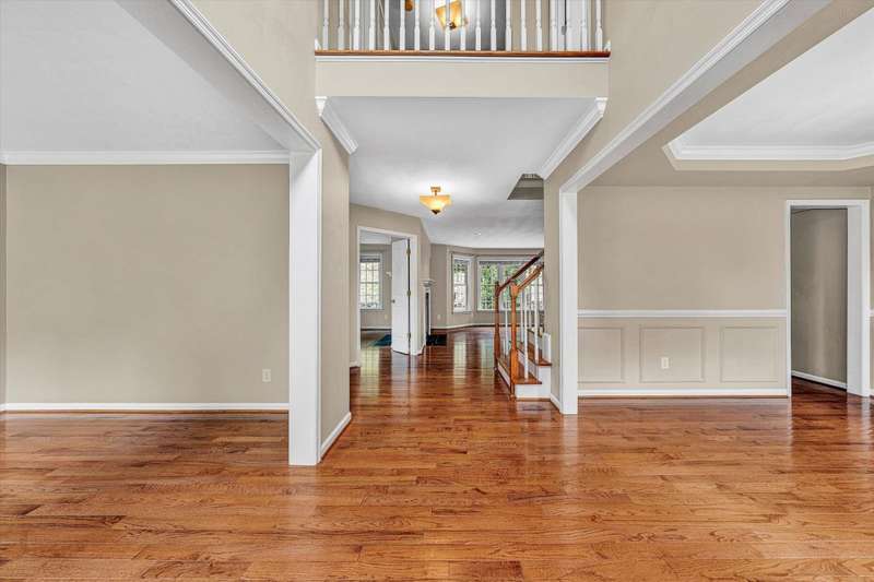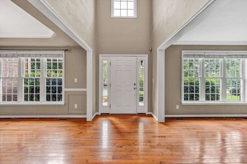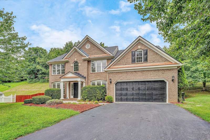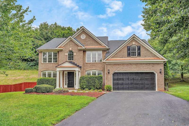 Nestled on a quiet cul-de-sac, this stunning brick Colonial offers timeless curb appeal and a spacious, light-filled interior. Step into the grand foyer with soaring ceilings and a lofted upper hallway. The open floor plan features hardwood floors, a double-sided gas log fireplace between the living room and office, and a gourmet kitchen with a gas range and spacious pantry. Upstairs boasts an impressive primary suite with its own sitting area and double walk-in closets, plus convenient upper-level laundry. The finished lower level includes a bedroom, full bath, and a recreational room with a wet bar for entertaining. Enjoy outdoor living with a paver patio, privacy fence and lush landscaping. The attached garage is spacious enough to fit two standard sized vehicles comfortably,