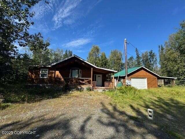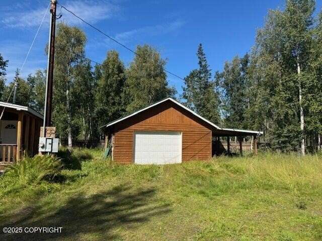 Affordable AS-IS Investment! Likely the house is a total teardown because of foundation issues and roof damage. Salvageable items may include windows, doors, wood interior, furnace, and appliances. Solid garage, well, septic (condition unknown), Prime location just outside city limits, minutes from Soldotna, world-class fishing, and recreation—ideal for rental cabins or getaway fishing retreat