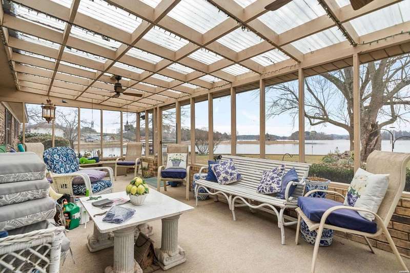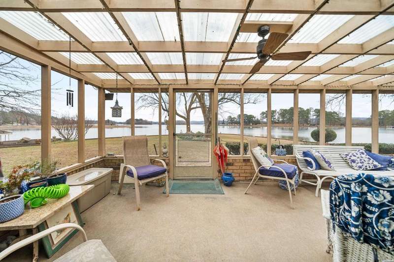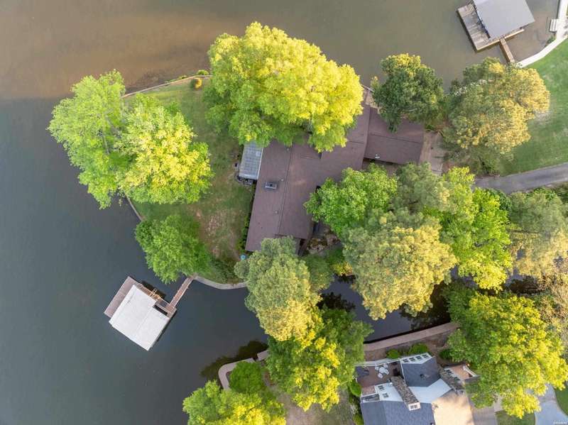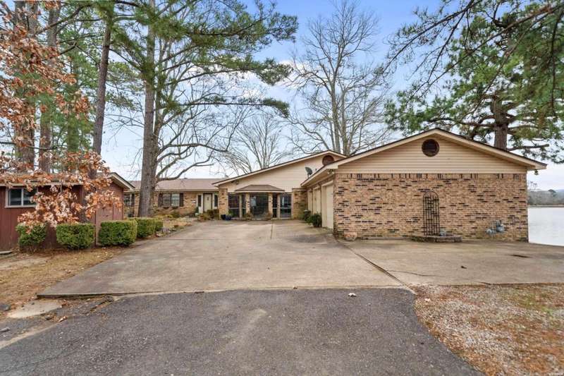 Stop scrolling!! This is the one!. Located on a premium peninsula of Lake Hamilton, this exceptional property boasts over 465 feet of prime shoreline on coveted Lake Hamilton, offering unparalleled water frontage and panoramic lake views. This expansive property is perfectly positioned to capture 180-degree vistas of serene waters, vibrant sunsets, and natural beauty in every direction. The point location provides privacy, tranquility, and unobstructed views that are simply unmatched. The home is a spacious, single-level residence designed to maximize comfort and capture the views. While the true value lies in the land, the home offers: 5 Bedrooms & 3 Bathrooms: Generously sized bedrooms and baths provide ample space for family and guests. This home provides multiple Living Areas, perfect for entertaining or relaxing. The large master suite features breath-taking lake views and a private, tranquil setting. Three-Car Garage provides plenty of storage for vehicles, boats, or recreational equipment. There is an additional storage building for convenience. This home is located less 15 minutes from so many amenities. These include shopping, healthcare, restaurants and Oaklawn casino.