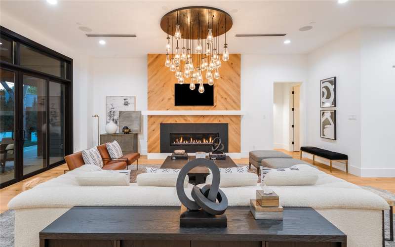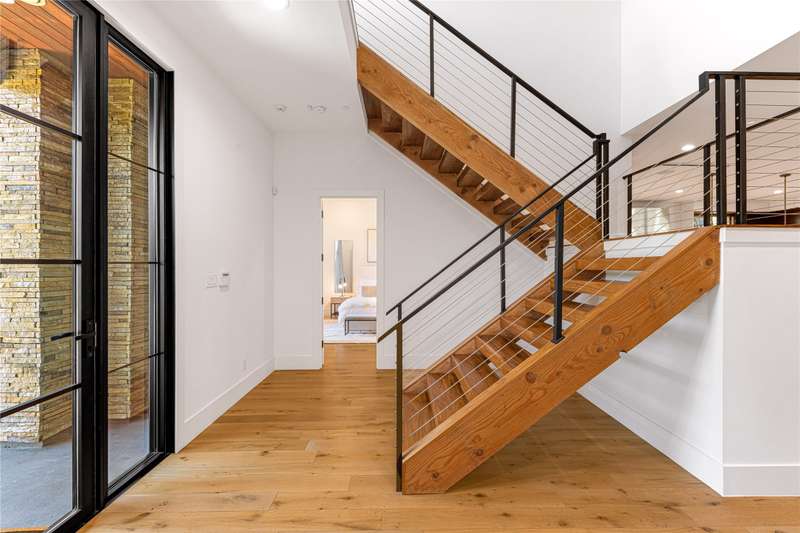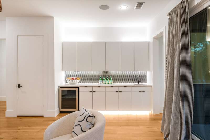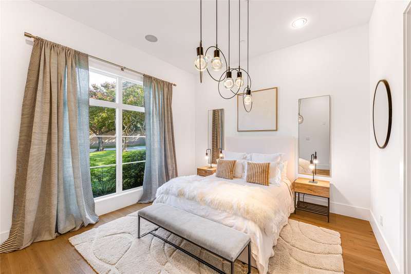 Step into luxury living with this architectural gem on an expansive 70-wide lot in University Parktucked behind the wall on a quiet cul-de-sac street, just a short walk to Boone Elementary in HPISD. Custom-built by Anderson Homes, this transitional modern showplace is the ultimate expression of luxury, design and craftsmanship. A dramatic La Cantina glass entry leads to soaring ceilings, natural textures, and sleek architectural linesflooded with natural light and layered in rich designer detail. Every element is curated: from the 6 white oak floors and Jeld-Wen wood-clad windows and doors to walnut-accented cabinetry, quartz and porcelain tile surfaces and designer lighting. The seamless indoor-outdoor flow elevates both daily living and entertaining. At the heart of the home, the open-concept great room is anchored by a sleek linear fireplace and a dramatic Restoration Hardware chandelierframed by sliding glass doors that open wide to the terrace and backyard oasis beyond. This intentional indoor-outdoor connection transforms the space, merging relaxed elegance with effortless entertaining. The great room flows into a chefs kitchencomplete with oversized quartz waterfall island, premium Thermador appliances, custom cabinetry, and a sunlit dining area. Also on the main level: a serene primary suite with a spa-worthy bath and boutique-style walk-in closet, a private guest suite, and a dedicated study. Upstairs, three spacious ensuite bedrooms connect to a large game room with wet bar and sliding doors to a covered balconyan elevated retreat for morning coffee or evening cocktailsand a media room offers the ultimate cinematic experience. The illuminated backyarddesigned by Radiant Gardens and Southern Botanicalis a private retreat with a covered terrace and open patio with cedar-shaded arbor, dramatic trickling wall fountain, and a turfed lawn ready for a future pool. Rare in both scale and sophistication, this home defines luxury in the heart of HPISD.