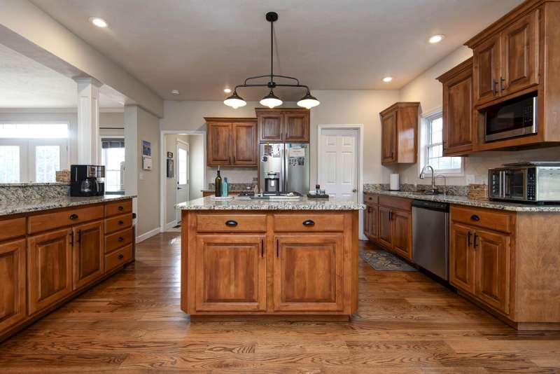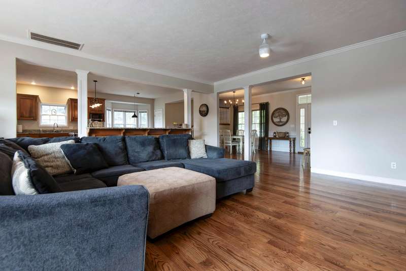 Don't miss this incredible home located on 9.77 acres just minutes from Springfield. It features: 4 bedrooms, 3 1/2 baths, formal dining, in-ground swimming pool and 30X30 outbuilding/workshop. The main level has open floor plan with 9' ceilings and crown molding, living room with wood stove, formal dining room. Large open kitchen with lots of workspace. It features: granite countertops, tile backsplash, custom alder cabinets, stainless steel appliances including gas stove/convection oven and the refrigerator is included, breakfast nook and walk-in pantry. The main floor also has: master ensuite with jetted tub, walk-in shower, his and hers closets and window seat; 2 more bedrooms; a full bath; laundry room and 1/2 bath. Upstairs features the 4th bedroom that is also a master ensuite with full bath with walk-in shower and large walk-in closet. Enjoy the privacy of your own in-ground swimming pool, large patio with outdoor kitchen with grill and storage area. Built-in fire pit. Nice 30X30 workshop with electricity and concrete floor. There is also space for RV parking with hookups. The home has beautiful hardwood floors on the main level in entry, formal dining, living room, kitchen, breakfast nook, hallways, and all 3 bedrooms. Carpet in upstair master ensuite. Tile floors in all bathrooms and laundry room. Nice storage area in attic area that is temperature controlled. High efficiency HVAC units (Zoned). Backup generator hookup at electric pool. All located on a beautiful 9.77 M\L acre setting. Call today for your private showing!