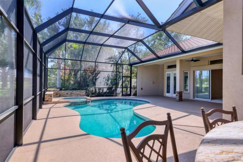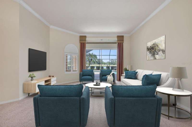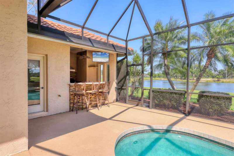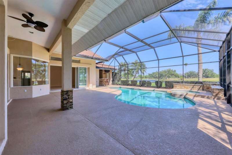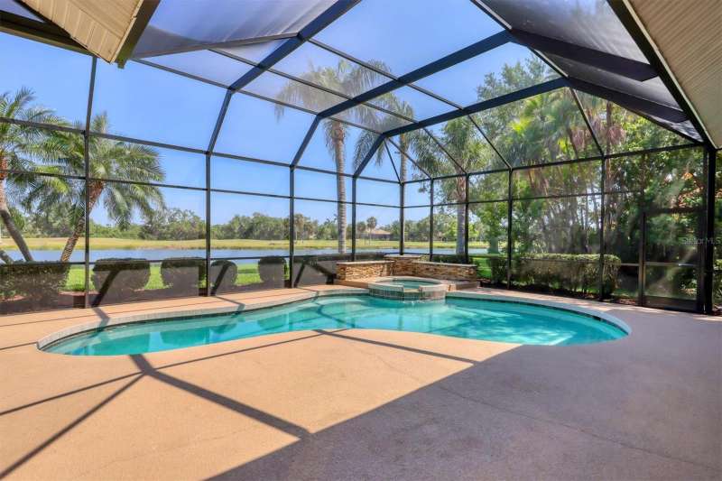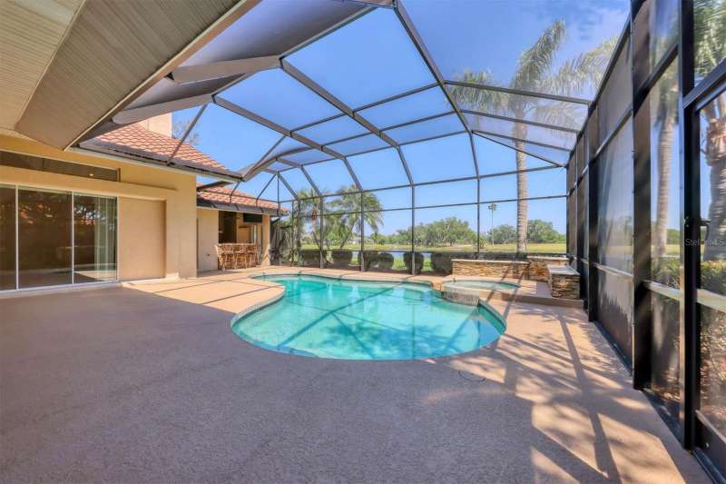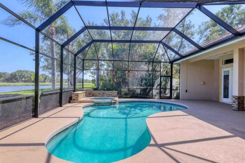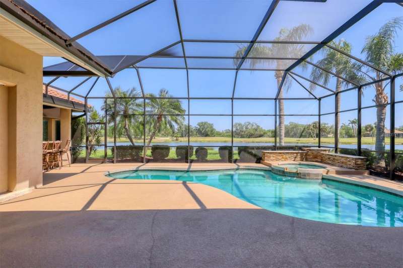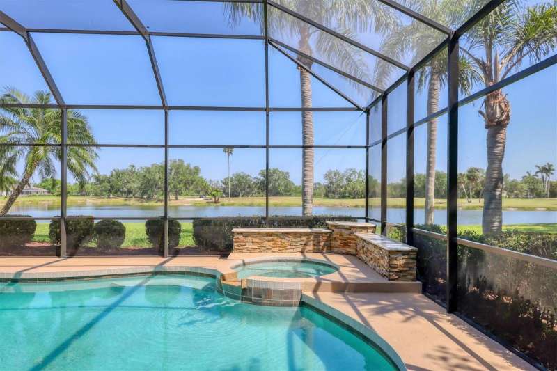 Under contract-accepting backup offers. One or more photo(s) has been virtually staged. Nestled on slightly over 1/2 an acre in a picturesque setting of majestic oak canopies, and lush tropical foliage a custom-built home awaits. This property combines comfort, privacy, and breathtaking views offering a true Florida lifestyle in one of Sarasota's most desired gated golf communities, Serenoa. This beautifully designed residence features a spacious 2,848sq split floor plan offering, three bedrooms, three full bathrooms a formal living room, a family room, and a private office. The property has sliders throughout providing expansive views of the lake & 5th fairway filling each room with natural light. The primary suite is a peaceful retreat with french doors that open to the patio, while the en-suit bath provides two generous walk- in closets with a soaking tub and walk in- shower. The open concept living and dining areas provide the perfect setting for entertaining, while the breakfast nook with its large aquarium window offers a tranquil start to your day. A cozy fireplace in the family room adds warmth and charm, creating an inviting space to relax. Step outside to a must-see patio, where the saltwater pool and spa provide year-round enjoyment under the Florida sun. The outdoor kitchen is fully equipped with built-in grill, mini fridge, bar seating, and a true pool bath with shower-perfect for entertaining guest in style. The garage provides ample space to park two vehicles, along with built-in cabinets for additional storage. The property is also equipped with a well for the irrigation system, helping to ensure the landscape remains lush and beautiful. Serenoa is truly a one-of-a-kind community, each property situated on at least a half acre surrounding a beautifully maintained golf course nestled among mature oak trees, lush foliage, wildlife and multiple lakes, creating a picturesque and serene environment. Tennis and pickleball courts are available to all residents. ** Golf course membership is optional * Whitetails bar & Grill located at the club house provides on-site casual dining a perfect spot for socializing or grabbing a bite close to home. Conveniently located near, Publix, Twin lakes park, shopping, and just a short drive away from award winning Siesta Key beach, and UTC town center. *** EXTREMELY LOW HOA Fees** Improvements include**2015 Tile Roof **2018 NEW AC **2021 WATER HEATER ***2022 PROPERTY RE-PIPED***2025 NEW POOL CAGE***2025 New carpet***