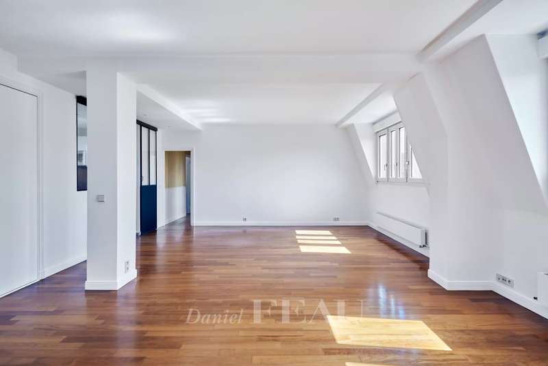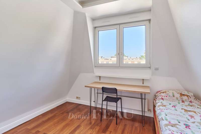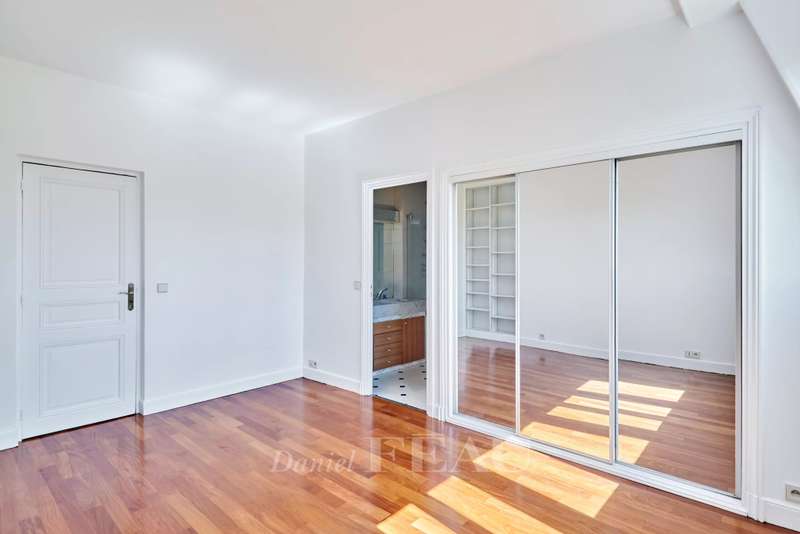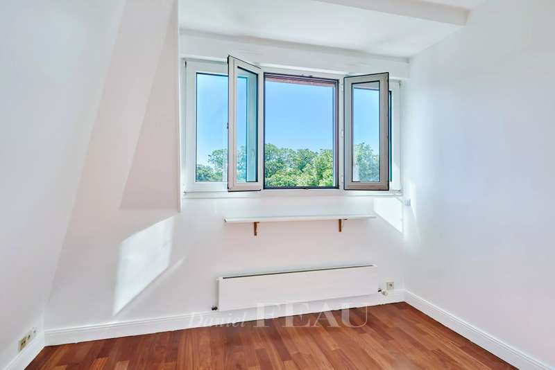 Bagatelle neighbourhood. This bright and peaceful apartment offering 137 sqm of floor space is on the 3rd floor of a superb listed early 20th century building. In very good condition, it includes a spacious living/reception room, a fitted and equipped semi open-plan kitchen, a guest wc, four bedrooms, a bathroom/wc and two shower rooms. The apartment is dual-aspect and enjoys views of the co-ownership's gardens and the Bois de Boulogne. With a parking space and a cellar.