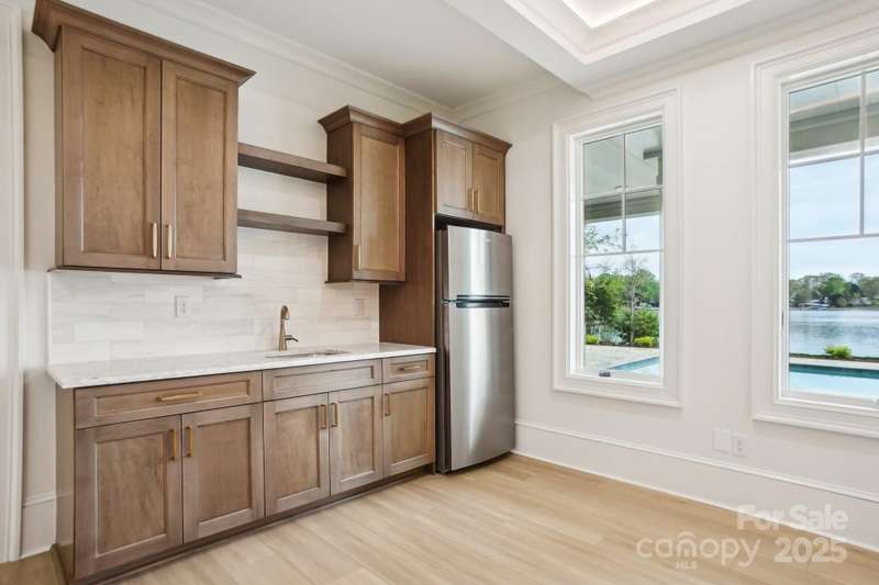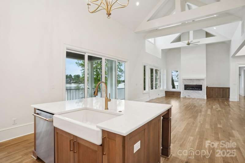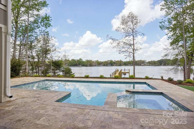 Experience luxury living at this stunning Cape Cod-style new construction home on the western shores of Lake Norman! Set on 0.47 acres w/ 100 ft of prime shoreline this property provides spectacular views of both sunrises & sunsets. The light gray cedar shake siding & grand wood front door create a timeless & inviting exterior. Inside the home boasts 4 bedrooms 4.5 baths & an open-concept design w/ vaulted ceilings & panoramic water views. Floor to ceiling windows flood the home w/ natural light highlighting the elegant white oak hardwood floors brushed brass hardware & gourmet kitchen w/ quartz countertops & GE Luxury series appliances. The luxurious primary suite on the main floor includes vaulted ceilings w/ shiplap detailing & a marble bath w/ dual sinks & closets. The walk-out basement featutes a second kitchen, fireplace, home theater, & flex space for a wine cellar, gym, or office. Outdoors enjoy an 18x16 pool & spa, putting green & 2 gas fireplaces for ultimate relaxation!