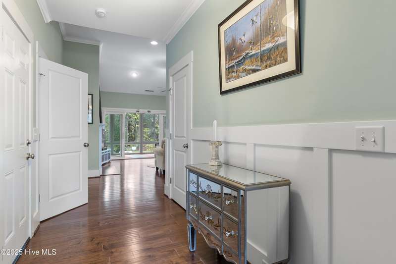This home was featured in the 2014 Parade of Homes. Situated on a quiet street in the Woodlands Park neighborhood of St. James Plantation 3556 Holly Oak Chase is close to sought after walking and bike paths, an amphitheater with a pond and bathrooms, a Native Plant Trail and Pollinator Garden, and one of 2 dog parks in St. James. Welcome to tranquility as you step onto the covered front porch and into the inviting foyer with wainscoting and engineered hardwood flooring leading to an open floor plan where you will gather with family and friends in the great room and kitchen. Make lasting memories as you enjoy the Carolina room which was updated in 2019 from a screened porch to a fully enclosed room with a mini split. Enjoy the eat in kitchen with a large granite island and breakfast nook looking out to the very private backyard with a patio and fire pit. The kitchen has ample cabinets and countertop workspace, a gas range and a newer dishwasher replaced in 2020. The split floorplan allows for the primary suite to have privacy on one side of the home while guests and family can enjoy privacy in the 2 additional bedrooms on the main floor or upstairs where you will find a well-appointed room with a private bath. The primary suite boasts a large walk in closet off the bedroom and an ensuite bath with a soaking tub, walk in shower, double vanities and a water closet. Outside you can control your irrigation with the Hunter remote app for worry free yard maintenance. At this price don't miss a rare opportunity to own a home in one of the area's most desirable communities. Convenient access to a nearby gate for quick trips to Oak Island or local shopping. St. James Plantation is a private, gated, waterfront community boasting four golf courses, 81 holes right in your neighborhood, 4 distinct clubhouses, 3 fitness centers, tennis and pickleball courts, indoor and outdoor pools, a full-service Marina with 475 boat slips, The Apothecary of St. James full-service Pharmacy, Beacon 315 Restaurant and 2 parks. Nature enthusiasts will love the biking and walking trails that wind through scenic ponds and the Intracoastal Waterway. St. James has it all. Residents relax at the private beach club on Oak Island, with stunning views, pool, showers, picnic area, and private parking. Whether you like a peaceful retreat or an active lifestyle St. James Plantation has it all! Schedule your private tour today.