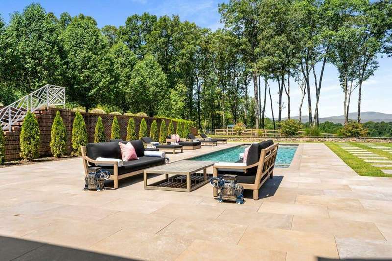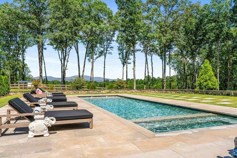 $1M+ PRICE IMPROVEMENT - Welcome to this timeless private mountain estate on 23 acres in Blue Ridge, Georgia. Located just minutes from downtown Blue Ridge on all flat paved roads, enter through automated gates down the private tree-lined driveway unveiling the four-bay car barn (additional 3 car attached) and stunning 10,000 sq foot completely renovated and fully furnished home. Take in the incredible scenery of the pool, landscape, pasture, creek and beyond to the endless mountain views of the Cohutta Wilderness. The home and grounds underwent a significant renovation and enhancement over the past year including: exquisitely furnished with high end designer furniture, art, lighting, rugs, wallpaper, and decor; new basement level custom kitchen and bar; full gym and game room, spa room with infrared sauna; updated main level chef's kitchen; updated bathrooms; new paint throughout; custom wallpaper treatments; all new light fixtures, led can lights and ceiling fans; Sonos system; new spring fed well pump and pipes with whole house water filtration; two electric car chargers; and new powered entry gates with camera and app control. The exterior and grounds underwent a significant transformation as well, including: complete re-staining and painting the exterior; tree removal and landscaping design to gain complete privacy and spectacular views of the Cohutta Mountain Wilderness; new Sport Court with pickleball, volleyball, badminton, and basketball that could also be used as a helicopter pad; 15x50 heated saltwater pool and spa with pebble tec, commercial gas heater, Indiana limestone pavers, and RH teak furniture; Barn, chicken coop and fencing for animals; and hiking/ATV trails throughout the property. Located just 10 minutes from downtown Blue Ridge or McCaysville, 25 minutes to Blairsville private airport, 25 minutes to Ellijay, and 1.5 hours to Atlanta. The possibilities for this property are limitless: equestrian, family compound, corporate retreat, wedding venue, bed/breakfast, wellness retreat, and more. This estate is unmatched for its combination of location, acreage, square footage, renovation, furnishings, amenities, privacy and views.