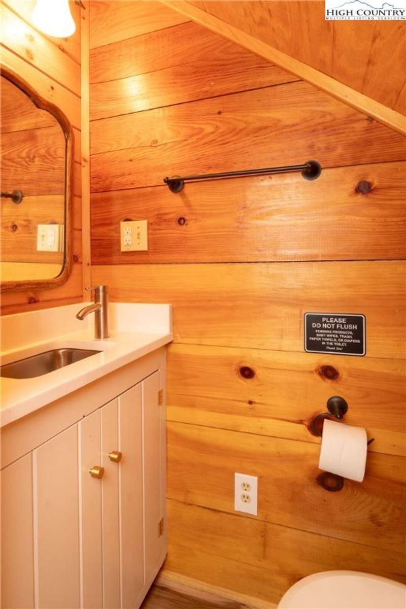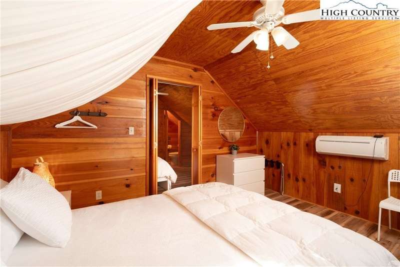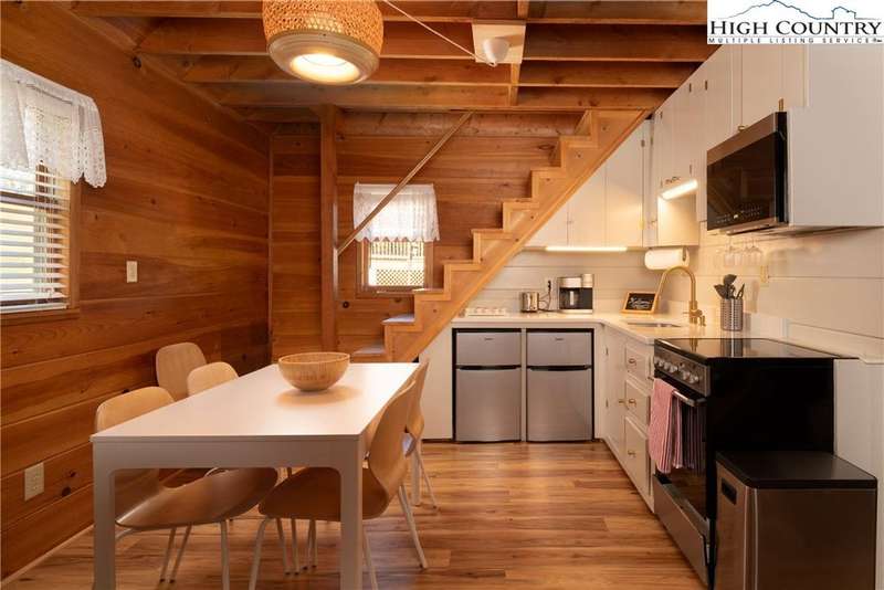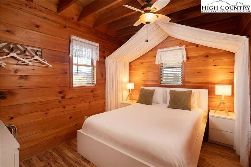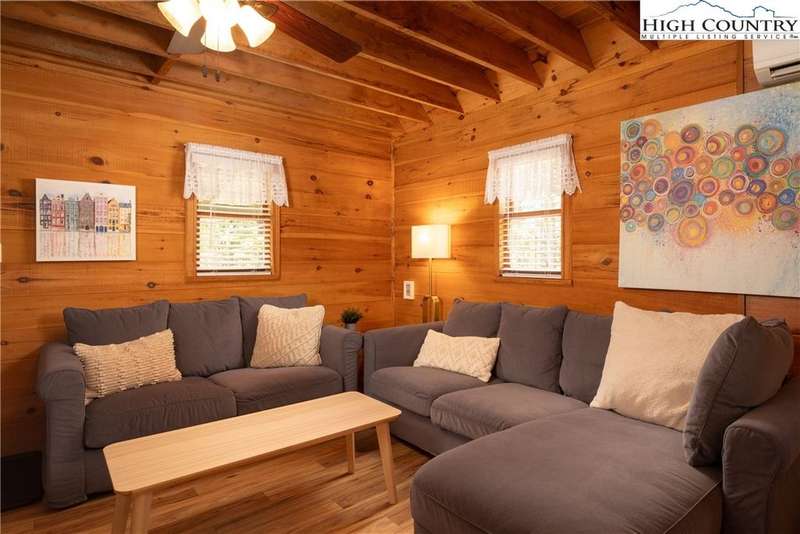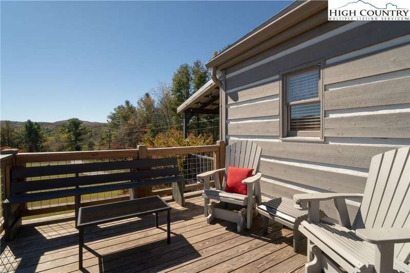 This sparkling Blue Ridge mountain cabin set on 2+ acres is ready to move in! Complete with furnishings inside and out, linens, and a fully stocked kitchen you'll just need to pack a bag! Perched on a ridge overlooking the New River, it boasts long and short range rolling mountain views. Enjoy sunsets and sunrises from multiple outdoor spaces including a large deck, front porch with swing and elevated gazebo overlooking the river. Don't forget the fire pit area for toasty nights by the fire stargazing and making mountain memories. On the main level, the home features an open concept living room with kitchen and dining area, primary bedroom, and full bath with laundry. The second floor features two sleeping areas and half bath. The home has been decorated with a simple, modern touch to let the details of the wood walls and beams shine. The New river is just a short 1/4 mile drive away for kayaking, canoeing, and fishing. Grayson Highlands State Park is just a short drive away for a hike along the Appalachian Trail as are many other great hiking spots in the West Jefferson/Ashe County area. The home has been a successful AirBNB and a new owner could continue with those rentals to bring in extra income. The lot is even large enough that you could add an additional home should you choose. Don't miss this opportunity to own your mountain getaway!