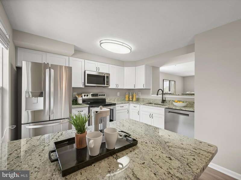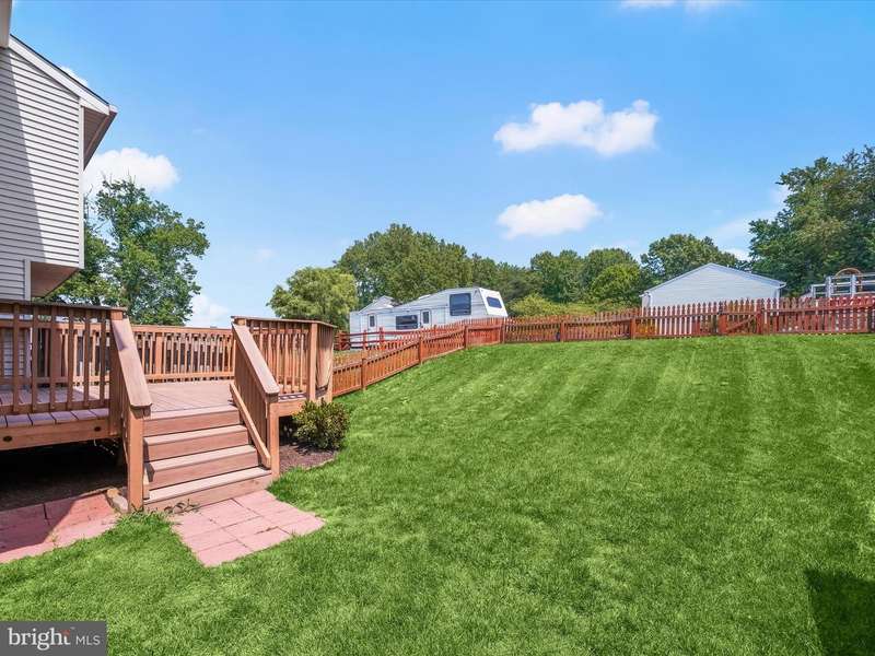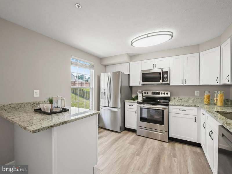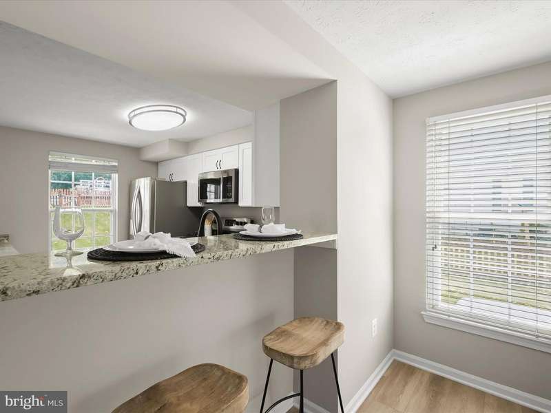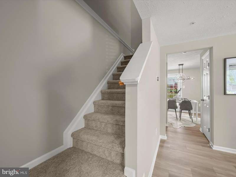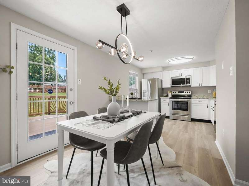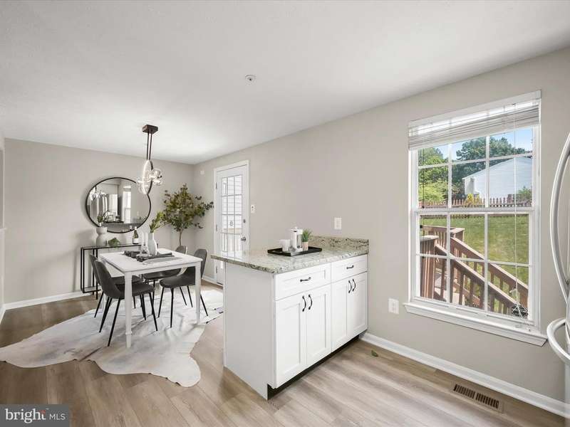 This spacious duplex home offers three finished levels of living space and a fenced backyard with a large deck, and boasts updates throughout including new LVP flooring and carpet, kitchen, all bathrooms, lighting package, and generator with a transfer switch. The sun-filled main level features new wide plank LVP flooring throughout and a bright living room with a breakfast bar that opens to the kitchen through a cutout. The dining room includes a modern chandelier and sliding glass doors that lead right out to the deck. The renovated kitchen is a standout, with white shaker cabinets, granite countertops, stainless steel appliances, and an island peninsula offering extra prep space. Upstairs, the primary suite sits under a vaulted ceiling and includes a beautifully updated en suite bath with a quartz vanity and beautiful tilework. Two more bedrooms, also with vaulted ceilings, and a second full bath complete the upper level. The finished lower level adds even more space with a cozy rec room featuring a gas-burning fireplace framed in marble, a walk-in closet with built-in organizers, a large laundry/storage room, and a bonus room that's great for a home office or even more storage. There's also a rough-in for a bathroom if you'd like to add one in the future. The fully fenced backyard includes a spacious shed and a freshly refinished deck backing to open space. All in a super convenient location close to major commuter routes, shopping, dining, and more.