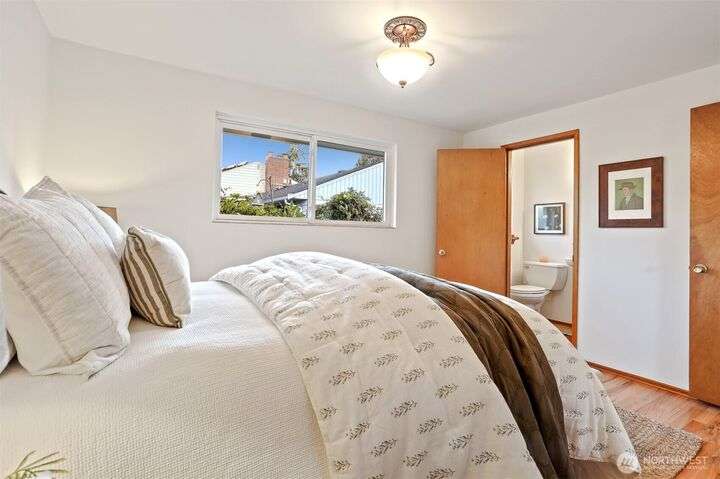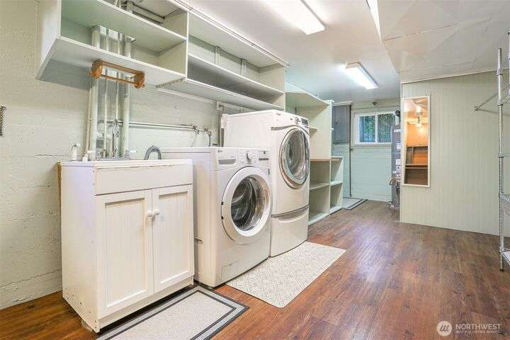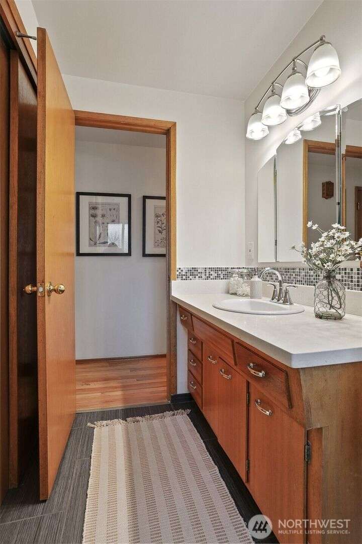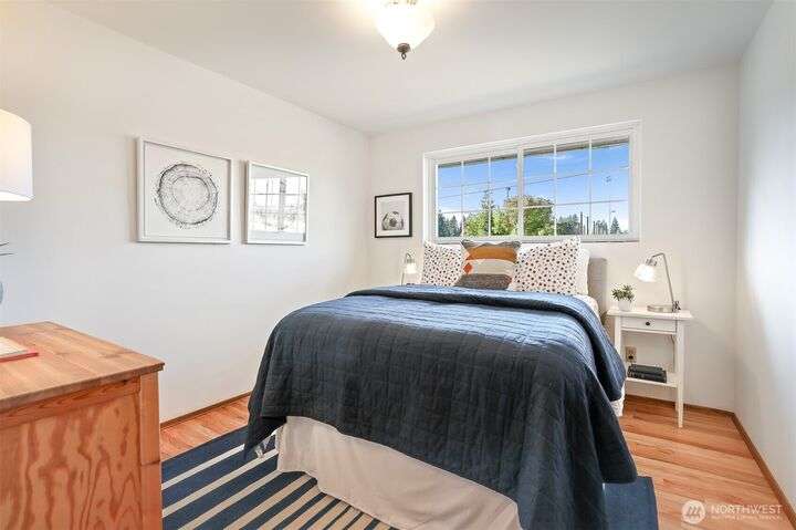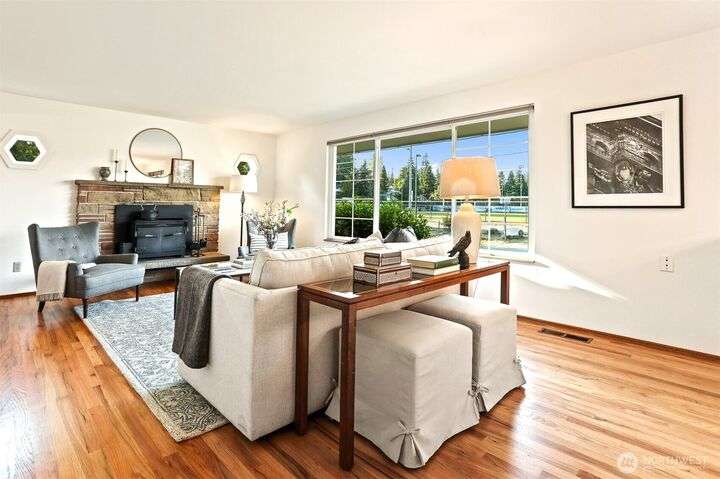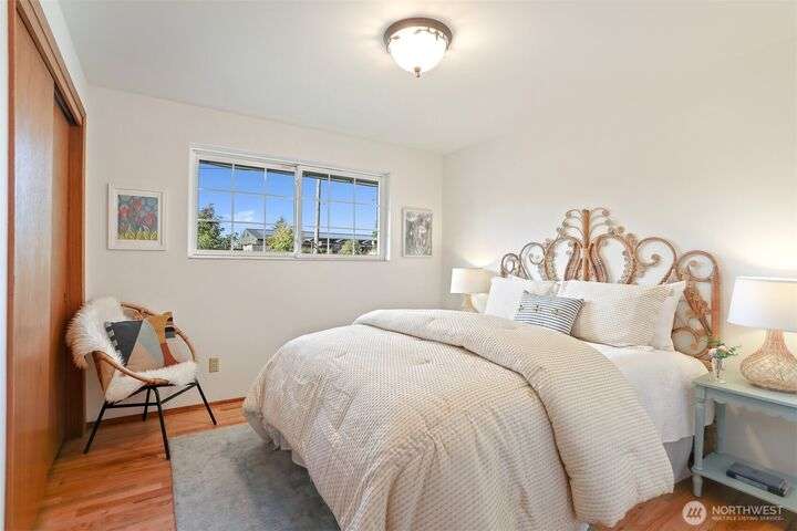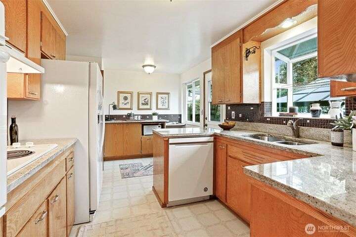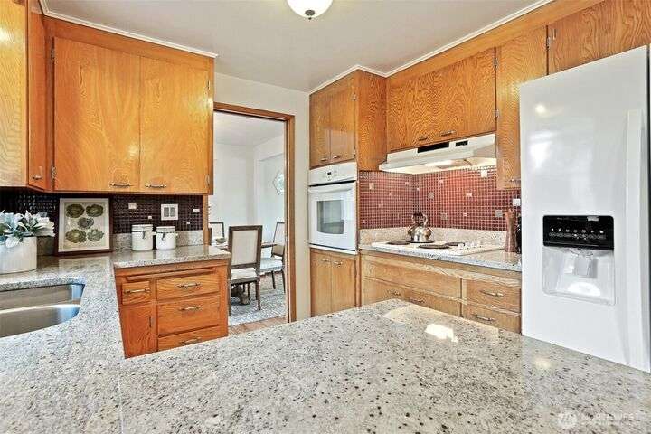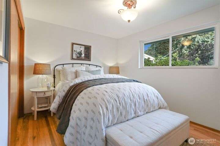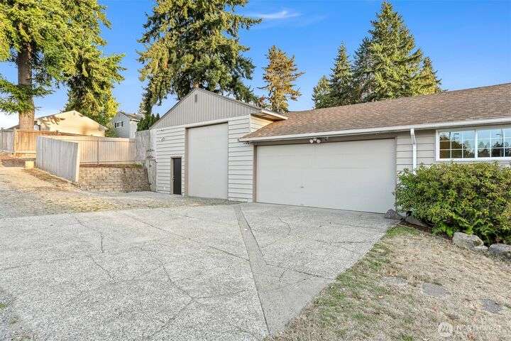 Fantastic Mid-Century showing pride of ownership throughout! Bright, open, spacious and super clean. Excellent entertaining kitchen flows to a private back yard sanctuary and garden space. Desirable 3 bed/1.75 bath on main floor, plus there's a second kitchen in spacious lower level for guest quarters or extended living. Large windows provide great natural light and there's plenty of extra storage. Updates include newer roof, gas furnace, H2O, windows and gleaming hardwoods. Amazing 4+ car garage space is perfect for RV, large shop, storage or home-based business. It's a quick stroll to Meridian Park and MP Elementary, plus you're close to great markets, shops, play fields, I-5 and Light Rail. Such a wonderful place to call home!