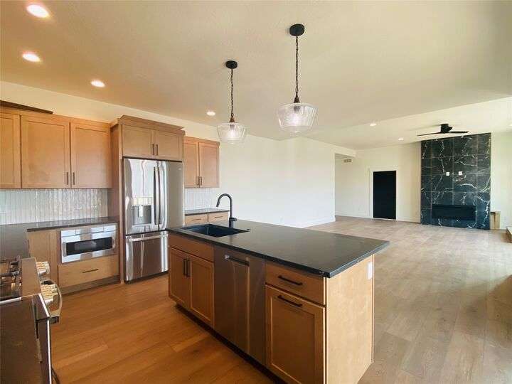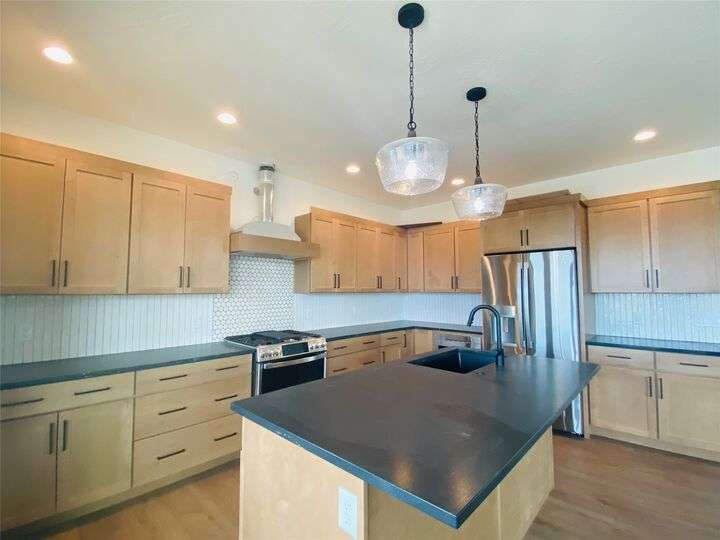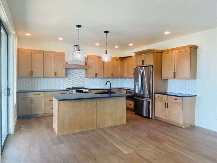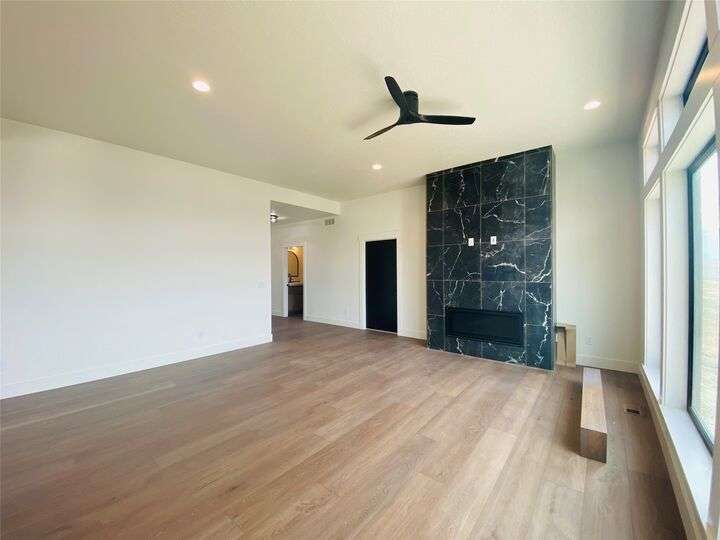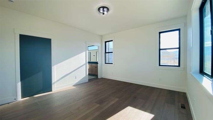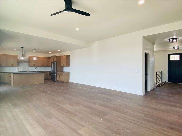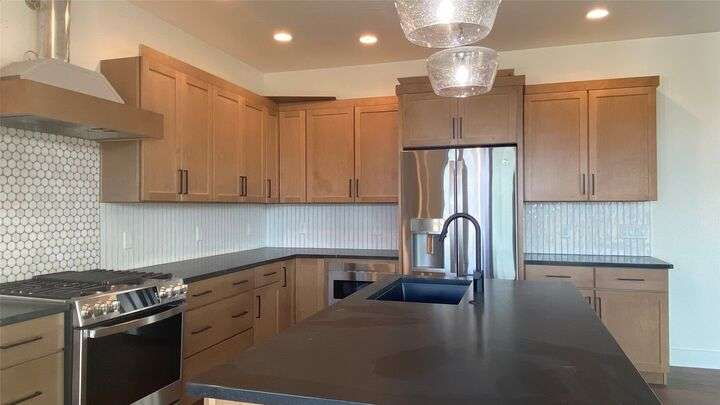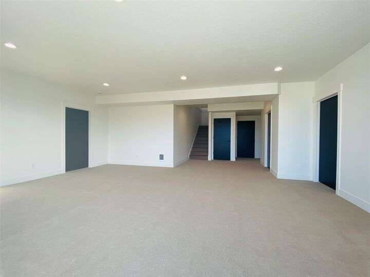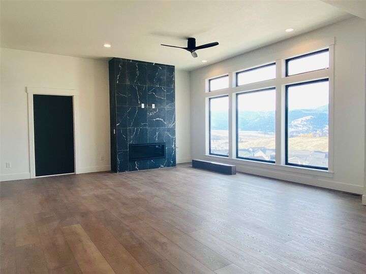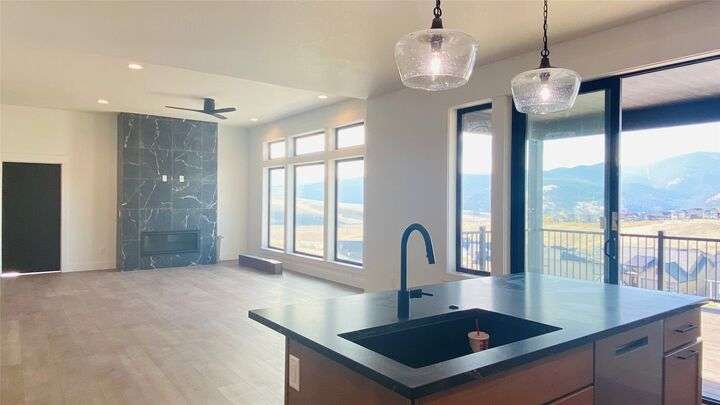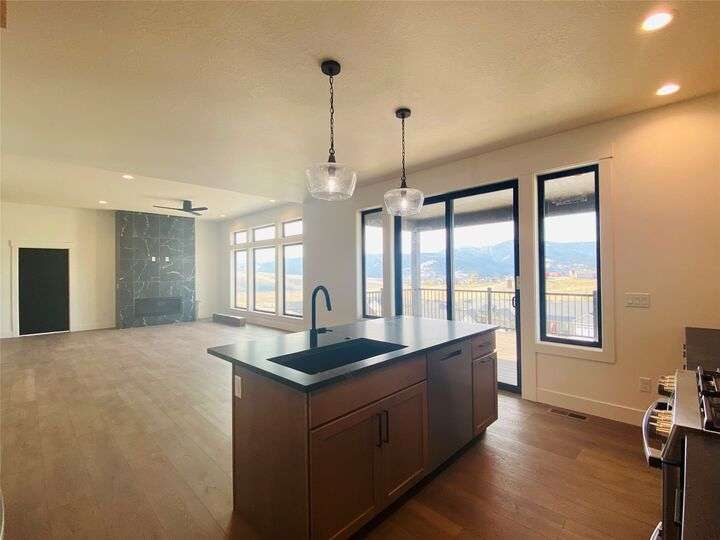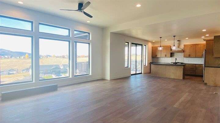 Brand new architecturally designed, professionally decorated and appointed 3,064 sq ft quality built five-bedroom three-bath modern ranch-style home with large finished two-car garage by award-winning builder McElmurry Homes Inc. situated on a premium down hill 13,941 sq ft lot with breathtaking views of the majestic mountains and valleys to the West in Linda Vista. This energy-efficient spacious home features an open functional floor plan with open adjoining living areas. Handsomely dressed with quality finishes and tasteful appointments throughout to include quality stained shaker panel cabinets, solid slab granite countertops with drop-under sinks, decorative tiles, modern black fixtures and hardware, durable low-maintenance wide plank LVP flooring, huge black sash windows and deluxe painted moldings and trims. Expansive great room greets you with 10 ft lofted ceilings, gas fireplace with decorative tile mantel and huge cased picture view windows flourishing with natural light. Adjacent is an open dining area with two-panel 8 ft sliding door which accesses the ample partially covered low maintenance rear deck with stairs and amazing views. There is a gourmet center island kitchen with granite countertops, decorative tile backsplash, granite composite drop under sink and matching GE Profile appliances with gas range, decorative range hood and drawer micro-wave. Large convenient utility mudroom off the ample garage with upper and lower base cabinet. A private spacious well-lit primary suite with walk-in closet boasts a ornate modern decorative tile walk-in shower with clear glass enclosure and elongated raised two-sink vanity, a well-appointed full guest bath with tub-shower enclosure and a large guest room off the entry foyer round out the main floor. The expansive, fully finished, walkout, daylight lower level with 9 ft ceilings layouts beautifully with a spacious open well-lit family room area with huge walkout partially covered view patio. There are 3 additional large bedrooms, all with ample closets and a spacious full guest bath with raised elongated double sink vanity and tub-shower enclosure. The low-maintenance natural rock accented exterior features a post and beam front porch, a huge rear partially covered composite vinyl coated deck with boxed enamel decorative metal railing and stairs to the rear yard, LP armor coat siding, architectural shingle roof and huge partially covered concrete sun patio off the lower level 8 ft family room sliding doors.
