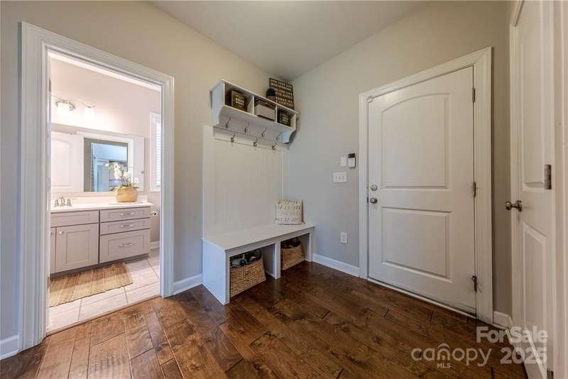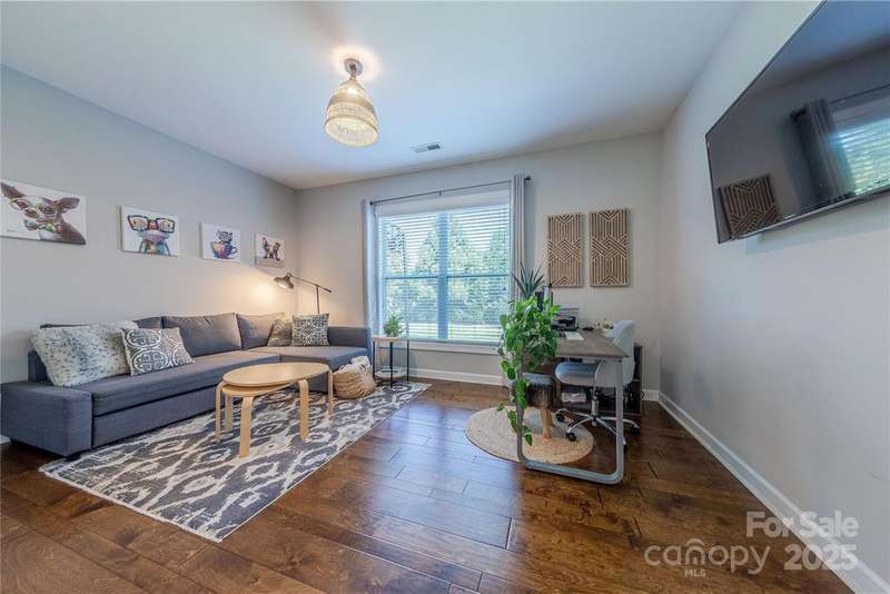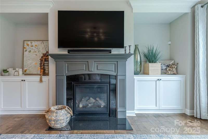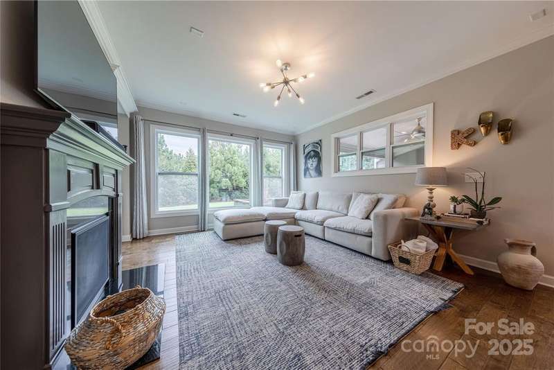 One-of-a-Kind Designer Home in Habersham! This meticulously updated Shea home sits on a private lot and showcases custom hardwood floors throughout, designer accents & abundant natural light. A grand 2-story foyer opens to a 2-story dining room with craftsman accent wall. The gourmet kitchen features oversized Chef's island with farmhouse sink, quartz counters, 42? cabinetry, stainless appliances, gas cooktop and exterior venting hood. The great room features built-ins, gas fireplace, and wired indoor/outdoor speakers. Main level includes a convenient guest suite plus French door?enclosed flex room with modern accent wall. The natural light filled primary suite boasts vaulted ceiling, spa bath including separate vanities, garden tub, glass enclosed tile shower & custom walk-in closet. The two additional generously sized secondary bedrooms also offer custom closets. Versatile open loft with accent wall. Outdoor living includes a covered lanai, paver patio with fire pit, and private fenced backyard with mature privacy landscaping. Community features pool, clubhouse, playground, pond and trails coupled with award-winning Fort Mill schools and prime location near premier shopping/dining. This home is a rare find and must see!