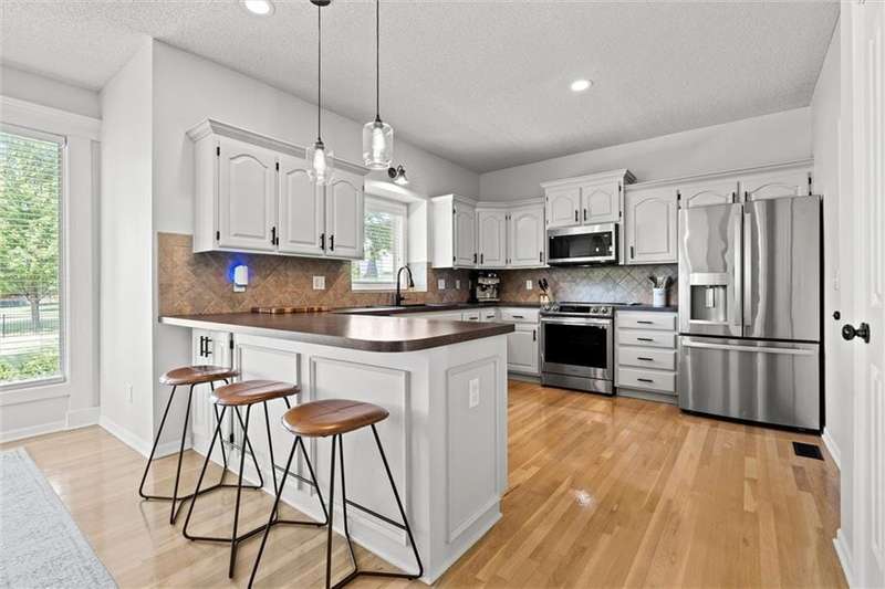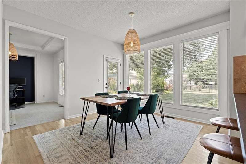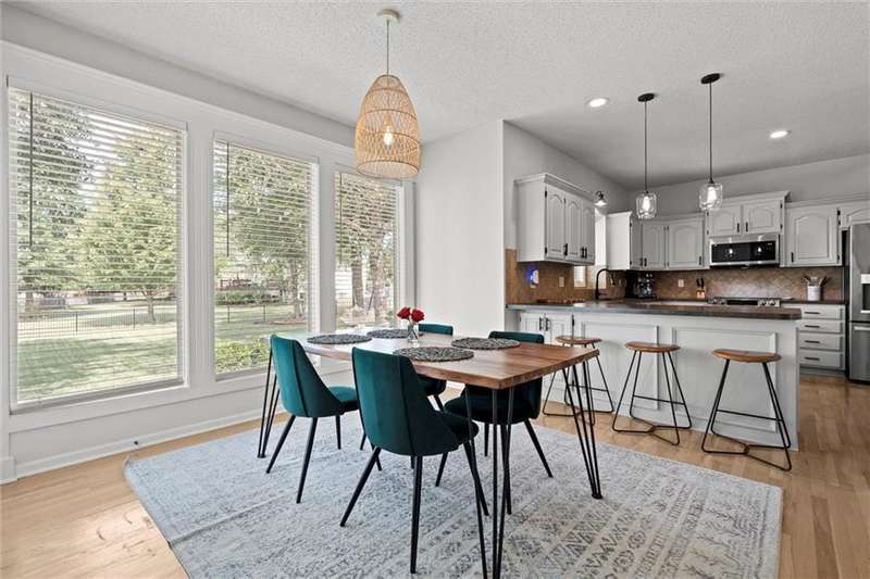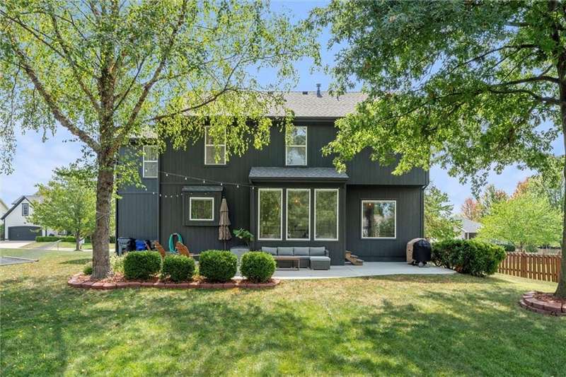 Charming two-story nestled in sought-after Foxfield Village! This beautifully updated 4 bedroom, two and a half bath home boasts a spacious, treed lot. Enjoy entertaining in the backyard this fall or cozy up for movie night in your finished lower level. There's plenty of room for a lower level fifth bedroom with an egress window. The kitchen is a feast for the eyes, featuring ample cabinet space, a breakfast bar, and easy access to the dining room. The neighborhood pool is a popular summer hotspot. So much new in the last few years: new roof, all new kitchen appliances, fresh paint and flooring, furnace and air conditioner. Tucked away in the neighborhood, yet just a jaunt to popular restaurants and shops and award winning Olathe Schools.