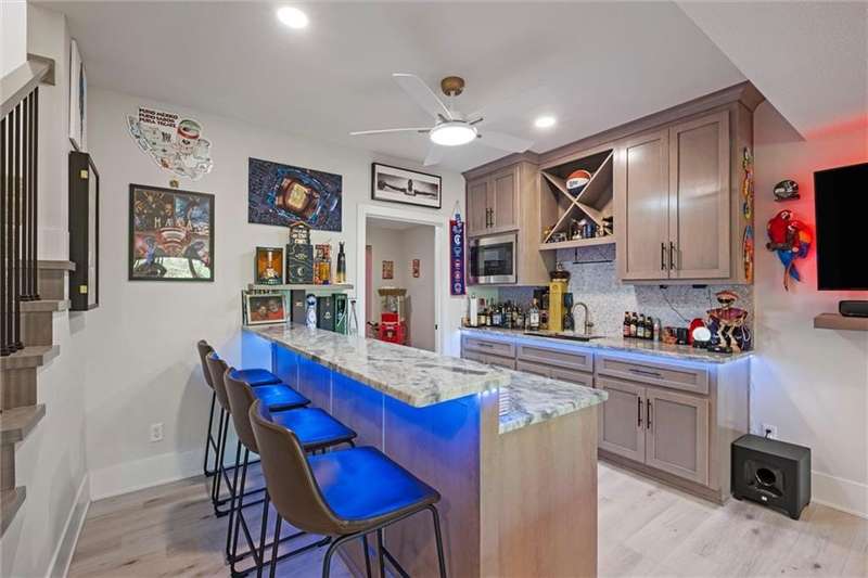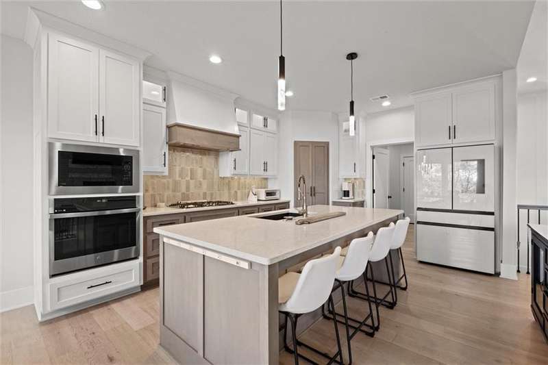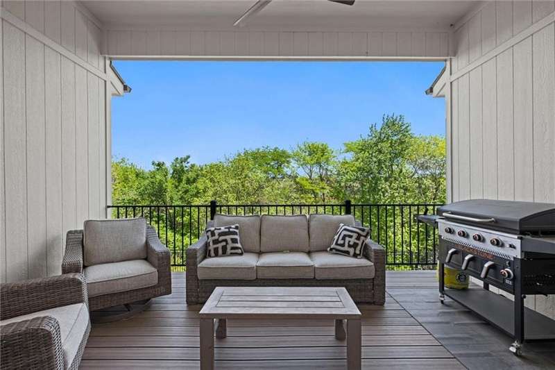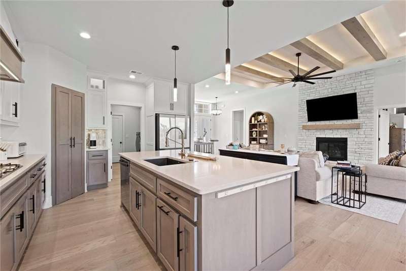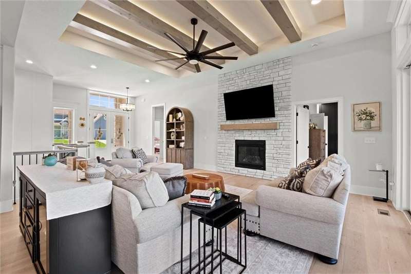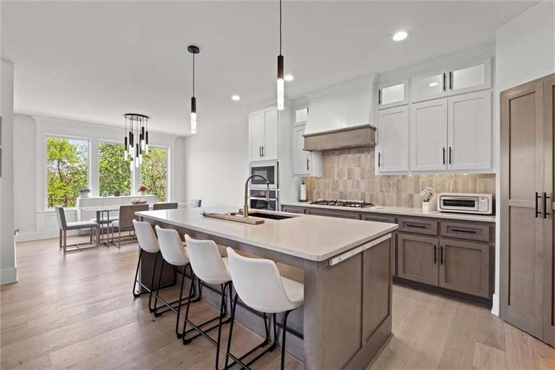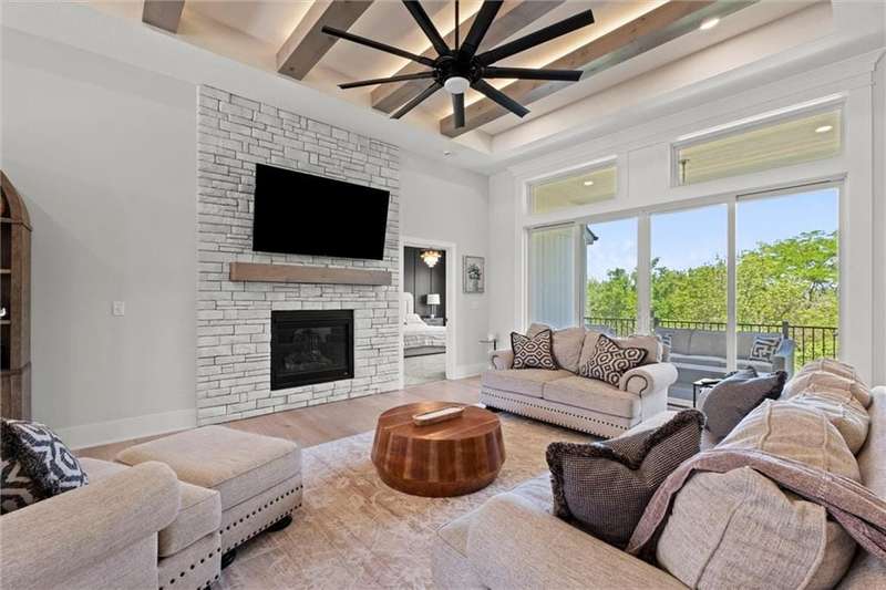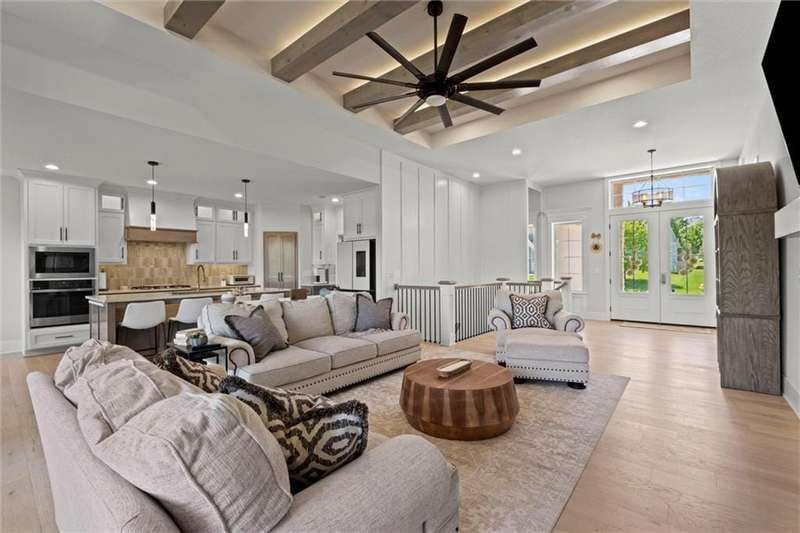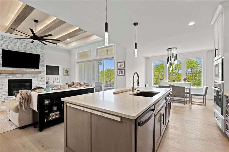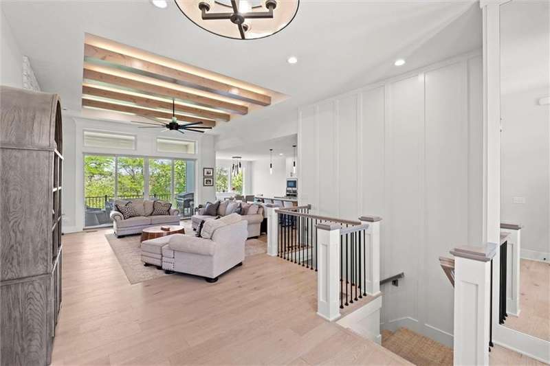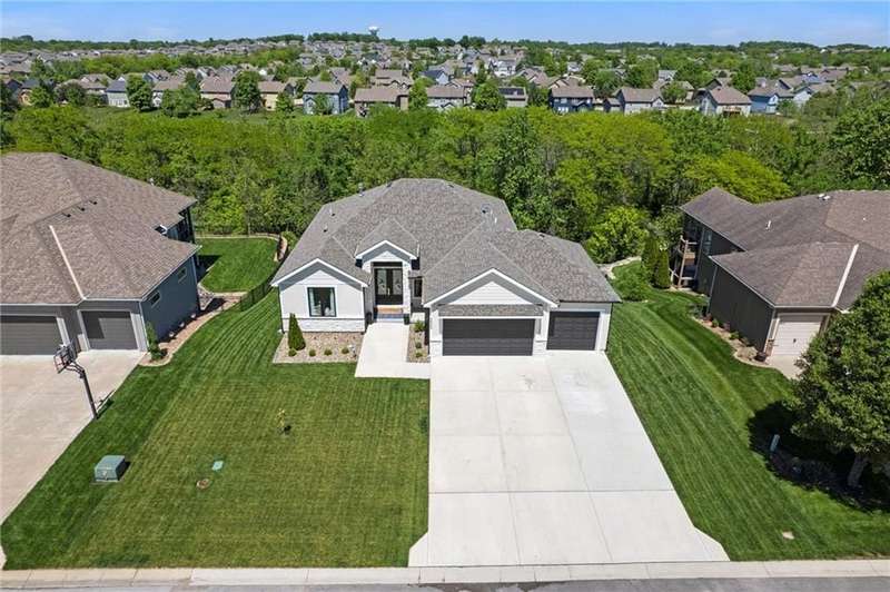 Motivated Sellers Ready for a New Owner!This move-in-ready home has it allprivacy, beautiful finishes, and a peaceful setting backing to wooded greenspace, a creek, and a 23-acre nature park. Sellers are motivated and have priced this home to sell quickly!Inside, youll love the spacious great room with 13 ceilings, exposed beams, soft lighting, a cozy fireplace, and a wall of windows with 8 sliders leading to a large covered deck. The kitchen is perfect for cooking and entertaining with a gas range, oversized island, upgraded lighting, and a roomy walk-in pantry, all opening to a dining area with backyard views.The primary suite offers a beamed ceiling, a spa-like bathroom with double vanities, a tiled shower with rainforest head, and a large L-shaped walk-in closet with built-ins. Theres also a second main-floor bedroom with its own walk-in closet, plus a combined laundry and office space with a built-in desk right off the garage.The finished walkout lower level is an entertainers dream, featuring a huge rec room with a wet bar and microwave, a full second kitchen, a half bath, and two more bedroomseach with its own vanitysharing a Jack-and-Jill bath. Luxury vinyl plank flooring runs throughout (no carpet).Enjoy the outdoors from the covered patio overlooking the creekthe property extends beyond the water for extra space and privacy. Neighborhood perks include 2 stocked ponds, 1.8 miles of walking trails, a playground, and 26 acres of preserved greenspace.