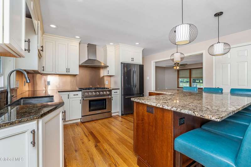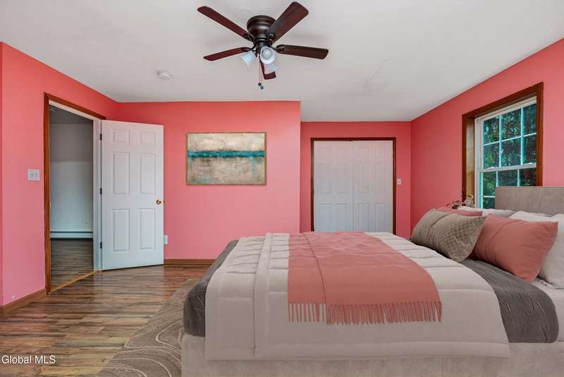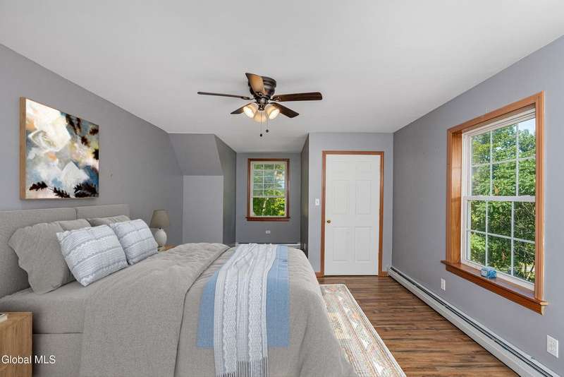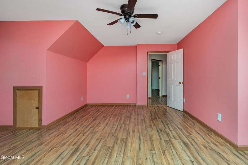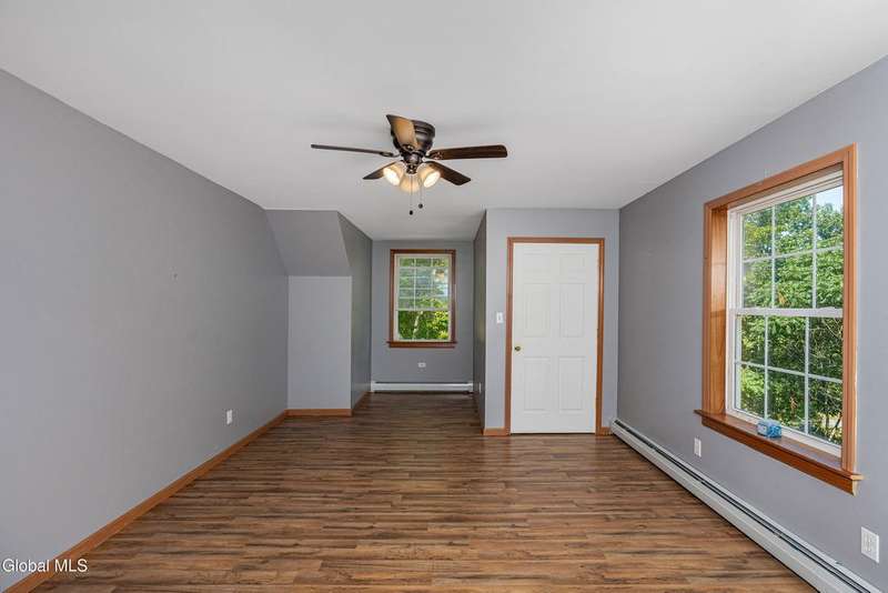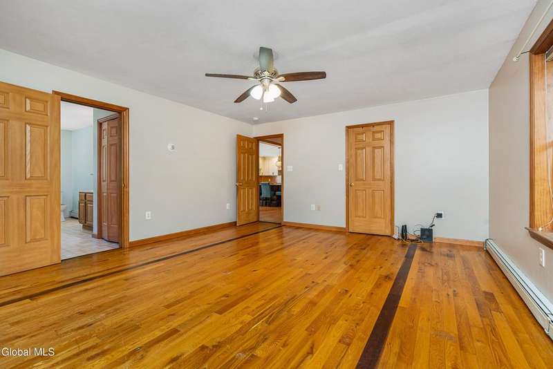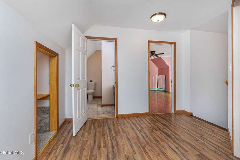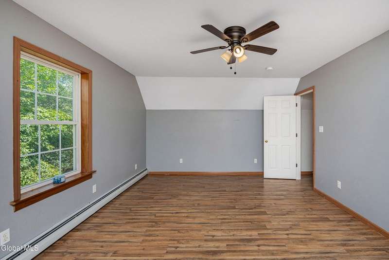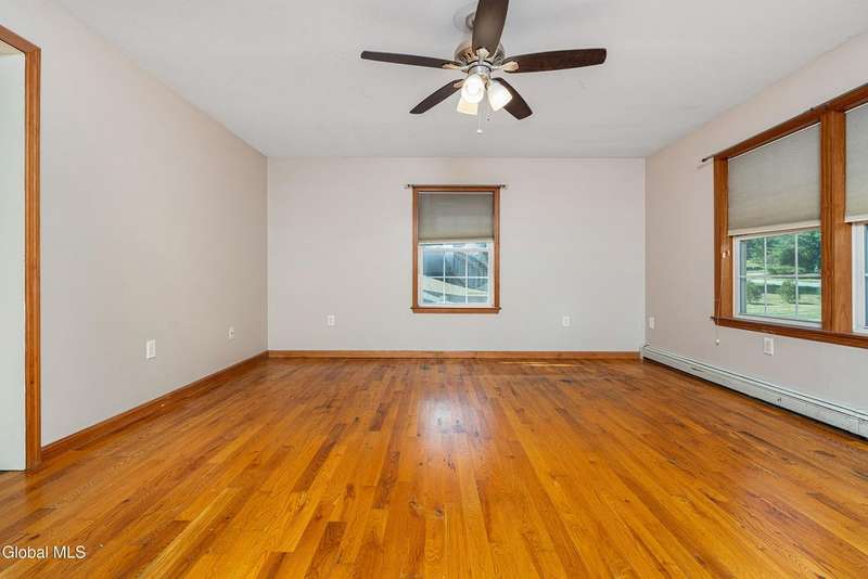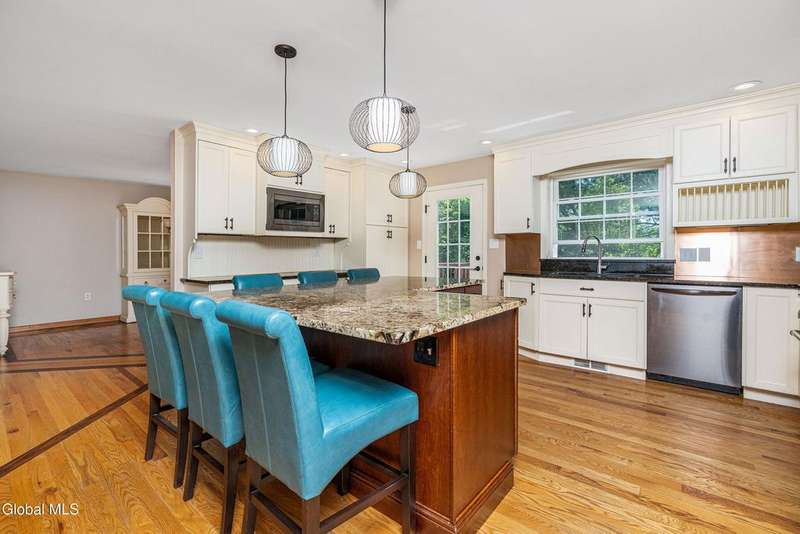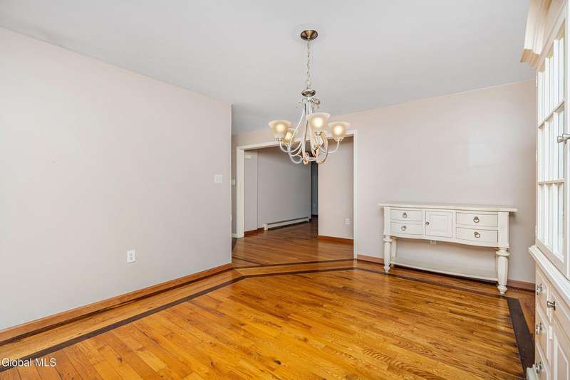 Nestled in the Averill Park School District - this 4-bedroom, 3 full bath Cape Cod offers over 2,300 sq ft of living space on 1.5 private acres. The first floor features hardwood floors, a bright living room, a formal dining room with inlaid wood detail, and a spacious kitchen with stainless steel appliances and deck access. The first-level primary suite includes a soaking tub, separate shower, and ample closet space. Upstairs are generous bedrooms and a full bath. The walkout basement offers excellent potential for finishing into additional living space. Outside, enjoy the above-ground pool, detached 2-car garage, and an expansive yard surrounded by mature trees. This property offers privacy, versatility, and room to grow.