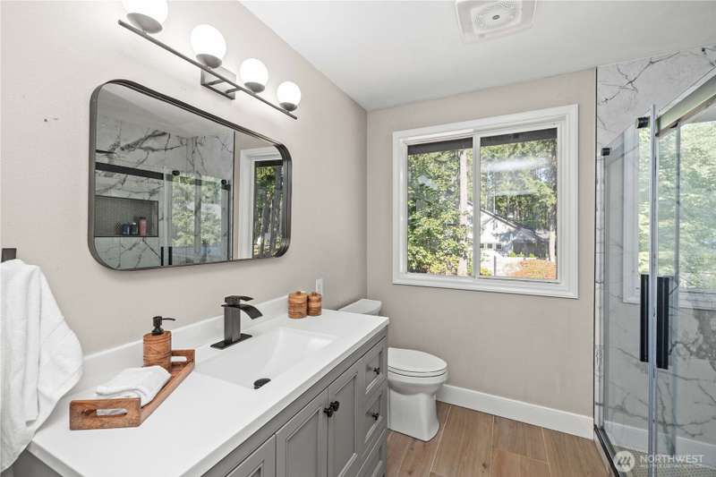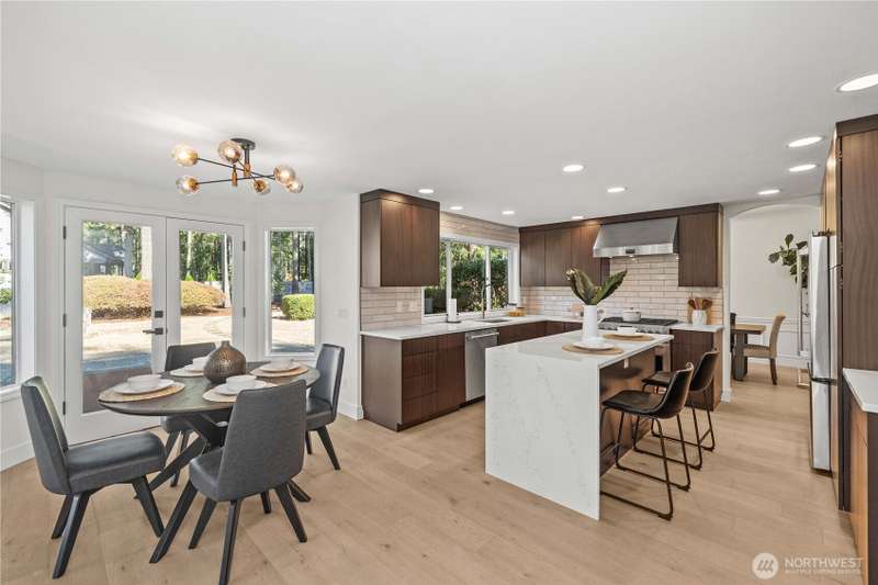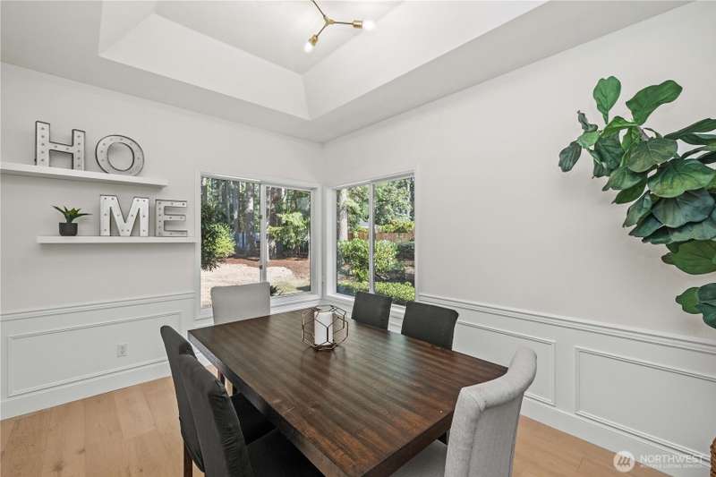 Discover this gorgeous, newly remodeled 3-bed, 2.25-bath gem in Black Diamond just moments from Lake Sawyer! Nestled on over a half acre, this home provides the perfect blend of space, modern style, and serenity. Walk into the two story entryway and enjoy dual living spaces, complemented by a large kitchen offering new cabinets & countertops. The dining room and additional eating nook offer space for easy hosting, and a main floor office for work or study. The primary suite boasts a reimagined 5-piece en-suite with walk-in closet, with 2 more bedrooms and refreshed 3/4 guest bath. Step outside to a sprawling back deck overlooking the expansive lawn, ideal for relaxing or hosting gatherings. This is the dream home you've been waiting for!
