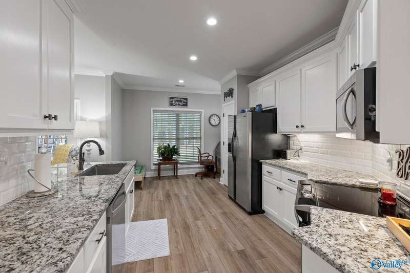 Five year old single level home on 1/2 acre lot with cheap county property taxes in a very convenient location to everything! Beautiful full brick home built with Anderson windows, no carpet in home, 9ft ceilings smooth ceilings, crown molding, base boards, tile backsplash, granite countertops, one owner home all make this a must see! Enjoy the quietness of the private back deck, or enjoy the fenced in front porch waving at neighbors with your four legged friend. This home is zoned for the county school system, but could be anexed in to Huntsville City School system if preferred. This is a property worth looking at!