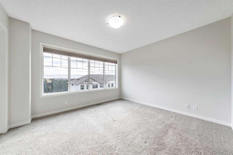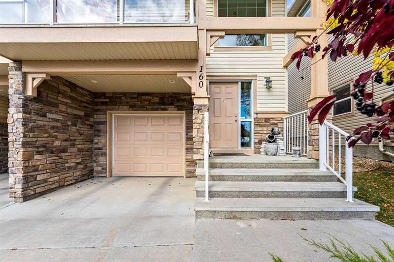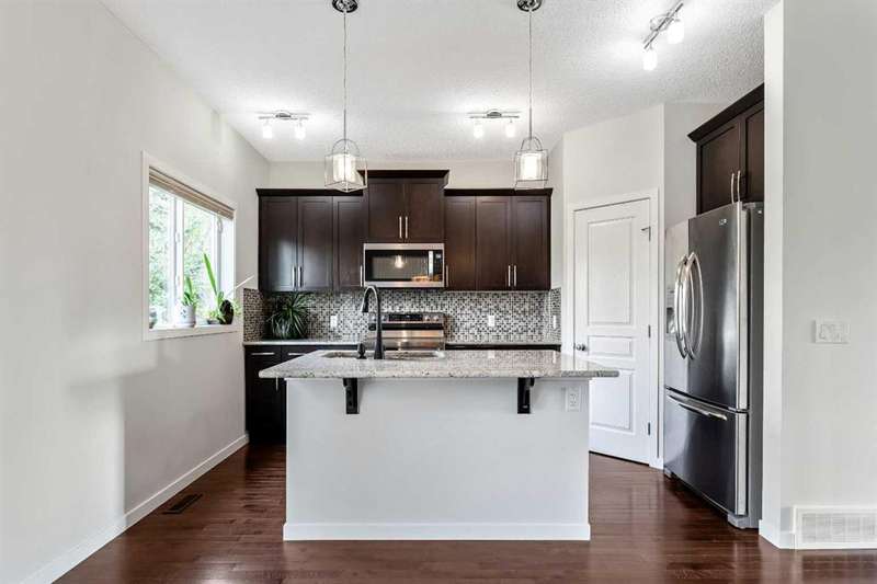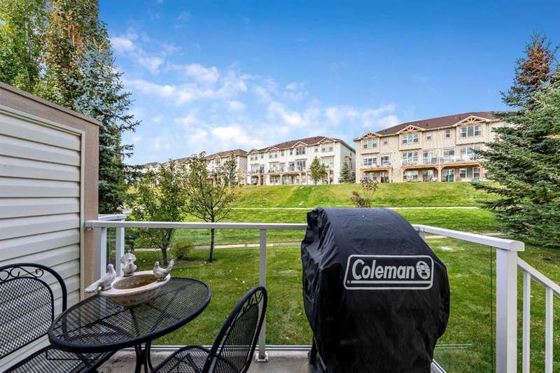 Welcome Home!!! This 1579 sq ft, Calbridge built townhome is nestled in the sought after community of Sunset Ridge with amazing views of the stunning valley covered with lush forests. When you step into this home you can tell it’s been well taken care of. We start with a large foyer to greet your guests, as you look above to a beautiful high vaulted, brightly lit ceiling. There is plenty of space to wipe your dogs paws with access to the attached garage. Up one flight and you have beautiful hardwood floors that flow throughout the entire main floor. A great open floor plan with a large kitchen and living room area. The kitchen has plenty of counter and cupboard space, a pantry, stainless steel appliances, and gorgeous granite countertops. From the kitchen/dining room you can step out onto the deck where you back onto a green space with no neighbours behind! Great place to BBQ! The living room has tons of space to host friends, a cozy fireplace, with large sliding glass windows which leads to an impressive front patio to take in the views of the valley as you have your morning coffee. The main floor is capped off with a tiled powder room. The upstairs has 3 bedrooms, the large master bedroom has a 3 piece ensuite, a walk in closet and large windows to take the views in. The laundry room is conveniently placed upstairs so you don't have to carry your clothes all the way downstairs. There is a 4 piece bathroom which finishes off the upper floor. The home has a great double attached tandem garage. The hot water tank was just recently replaced. Amazing walking paths to take the dogs out, and close to schools, shopping and is situated perfectly to get out of town, a 45 minute drive to Canmore/Banff. This place is perfect for a family, investor, or a first time home buyer! Don't miss out!!
