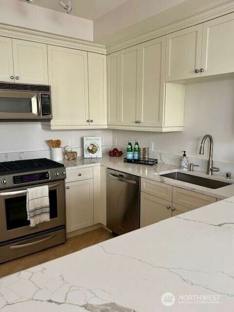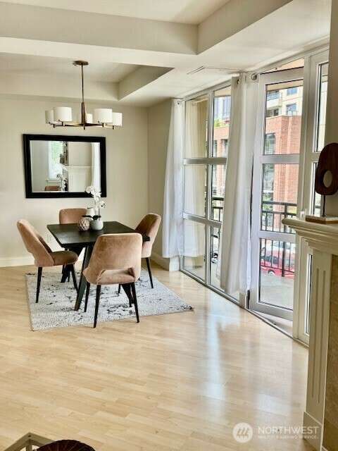 Located in the heart of Old Bellevue on Main Street, this newly remodeled 3rd-floor unit in The Astoria offers exceptional one-level living. An open layout with floor-to-ceiling windows fills the space with natural light. Elegant details include light hardwood floors, high-end finishes, and a top-tier kitchen with Quartzite counters, stainless steel appliances, and custom cabinetry. The living and dining areas feature a gas fireplace and French doors opening to a view balcony. The spacious primary suite includes a spa-inspired bath and walk-in closet. Add'l amenities include concierge, roof-top deck, courtyard, 2 secure parking spaces, and storage. Just steps to elegant and casual dining, boutiques, Meydenbauer Bay, parks, and shopping!