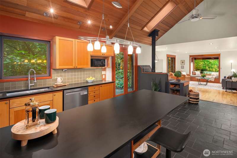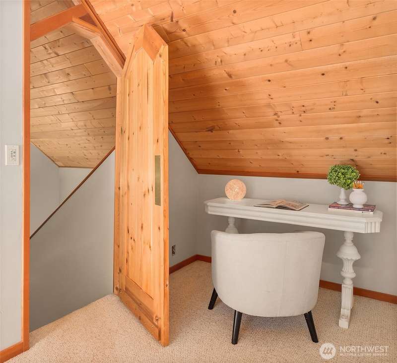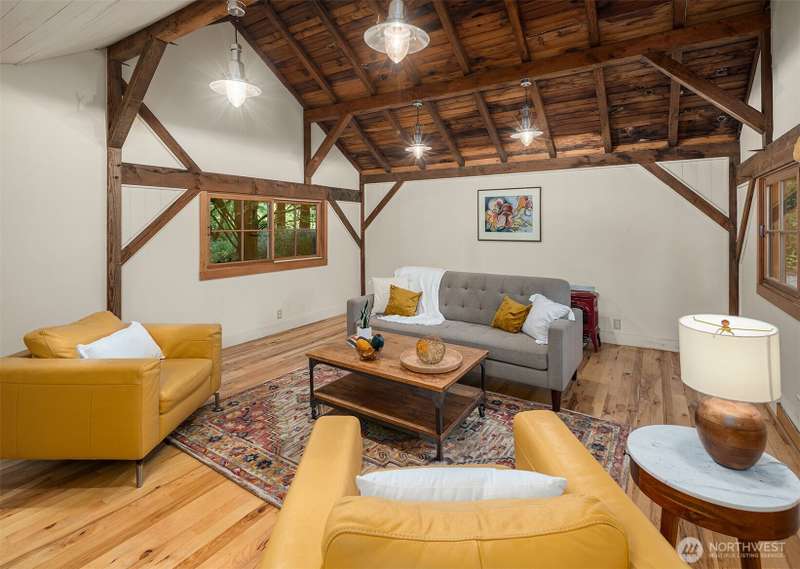 Nestled in the heart of Vashon’s vibrant arts & music community, this magical home offers a rare opportunity to live in peaceful harmony with nature & enjoy all Vashon offers. This enchanting retreat is surrounded by towering evergreens & lush ferns, creating a sense of seclusion & serenity. Inside, cozy built-in window seats invite quiet moments of reflection or reading, the big loft office is perfect for writing your novel, and the stunning third-floor primary suite feels like a private treehouse, offering views of the wooded landscape. The detached authentic timber-frame studio is generous & private. This one-of-a-kind property is a perfect blend of island charm, creative spirit, & natural beauty. Experience the magic of island life!