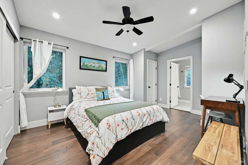 Built in 2022, this contemporary home offers the peace of mind that comes with new construction and modern efficiency. Designed to today's California building standards, it includes an interior fire sprinkler system, dual-pane windows, energy-efficient systems, and water-saving fixtures. The open floor plan features a bright kitchen flowing into the living area, ideal for entertaining or relaxing among the redwoods. Bedrooms are well-sized with ample storage, while stylish bathrooms showcase durable, modern finishes. Located in the Rio Nido community just 1.3 miles from downtown Guerneville, you'll enjoy access to seasonal amenities including a community pool, Pee Wee Mini-Golf, playground, bocce, and live music at the Rio Nido Roadhouse and The Rio Nido Lodge. Just minutes from the Russian River, Armstrong Woods, Korbel Winery, and the Sonoma Coast, this move-in ready property offers a rare blend of modern comfort and classic Russian River lifestyle. Own Your Dreams!